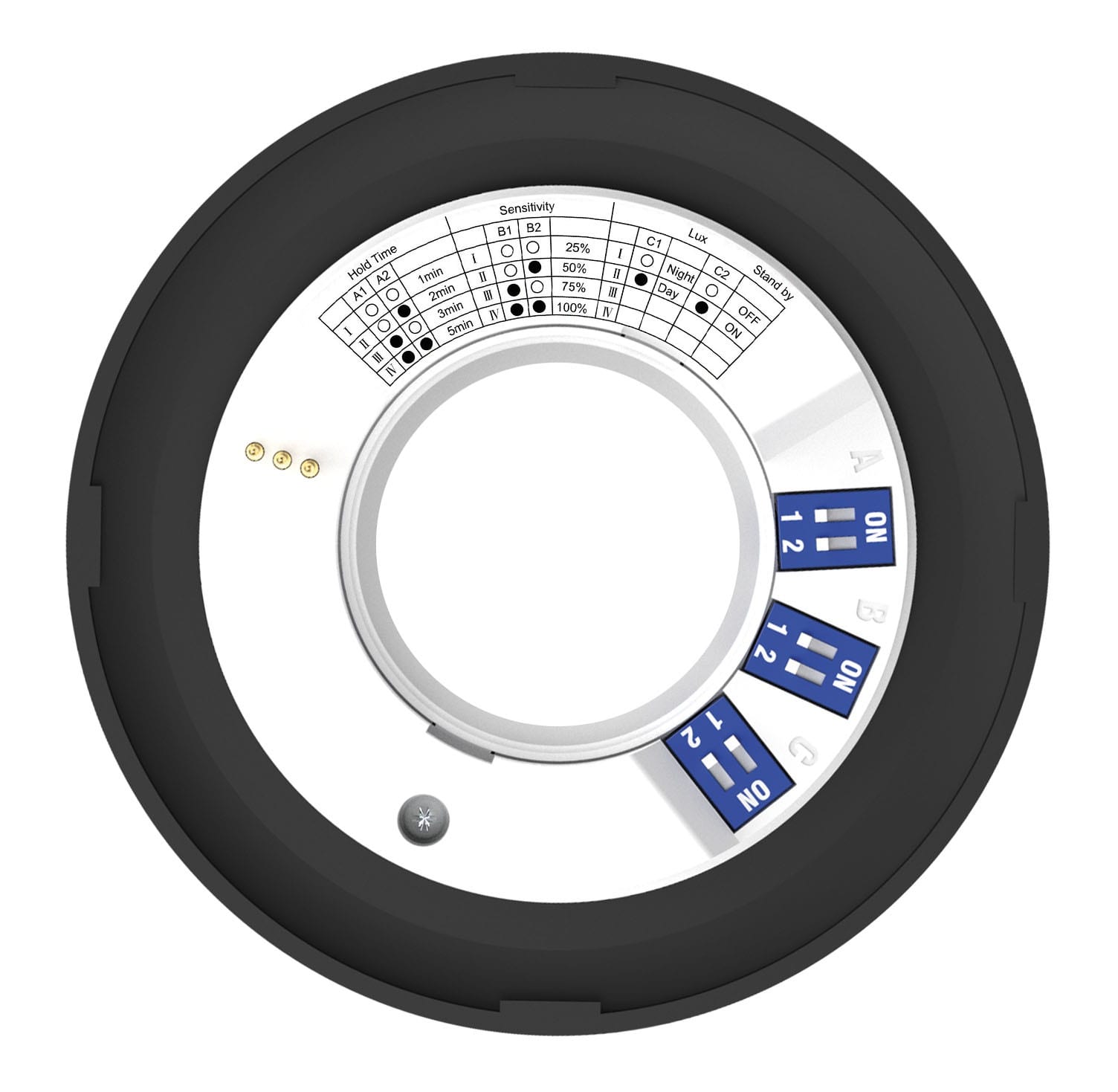Réglage PIR accessible sous la collerette 1/4 de tour - Fonction veille à 10% de la puissance - Faible épaisseur : 44 mm