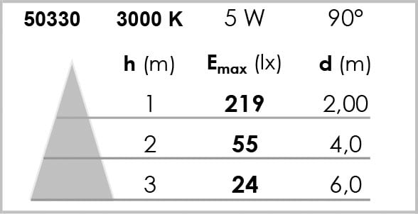 Corps en aluminium pour une meilleure dissipation thermique - Durée de vie de 30'000 heures - Angle symétrique de 90° avec diffuseur opale en retrait pour un meilleur confort visuel - Alimentation intégrée - Technologie LED, 88 lumens par Watt, économies d’énergies - IP44, compatible volume 2 Salle de bain - Diamètre d’encastrement 70mm