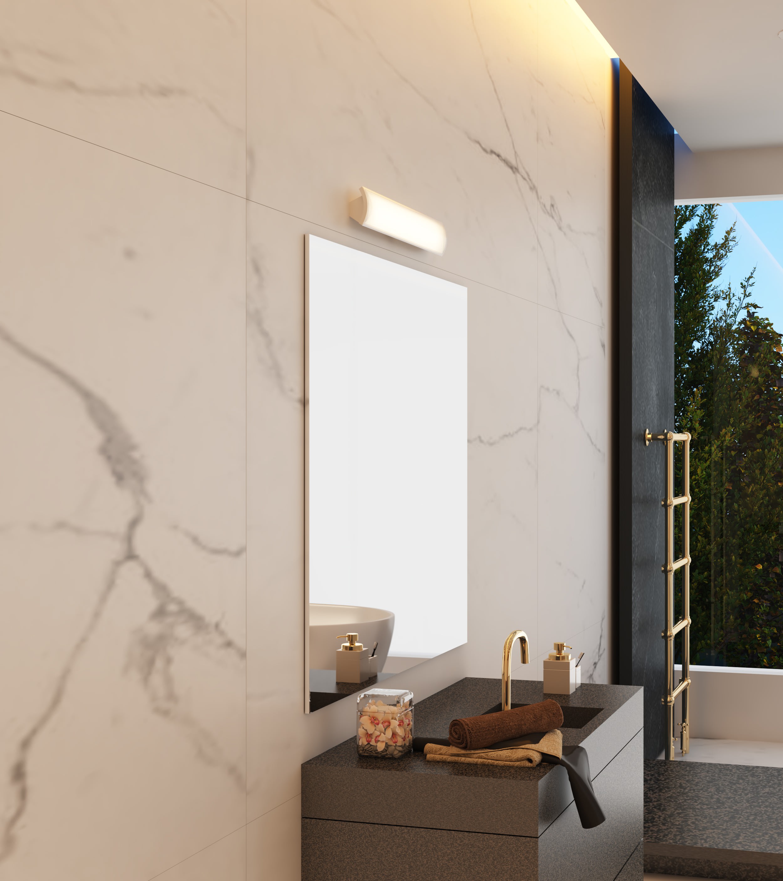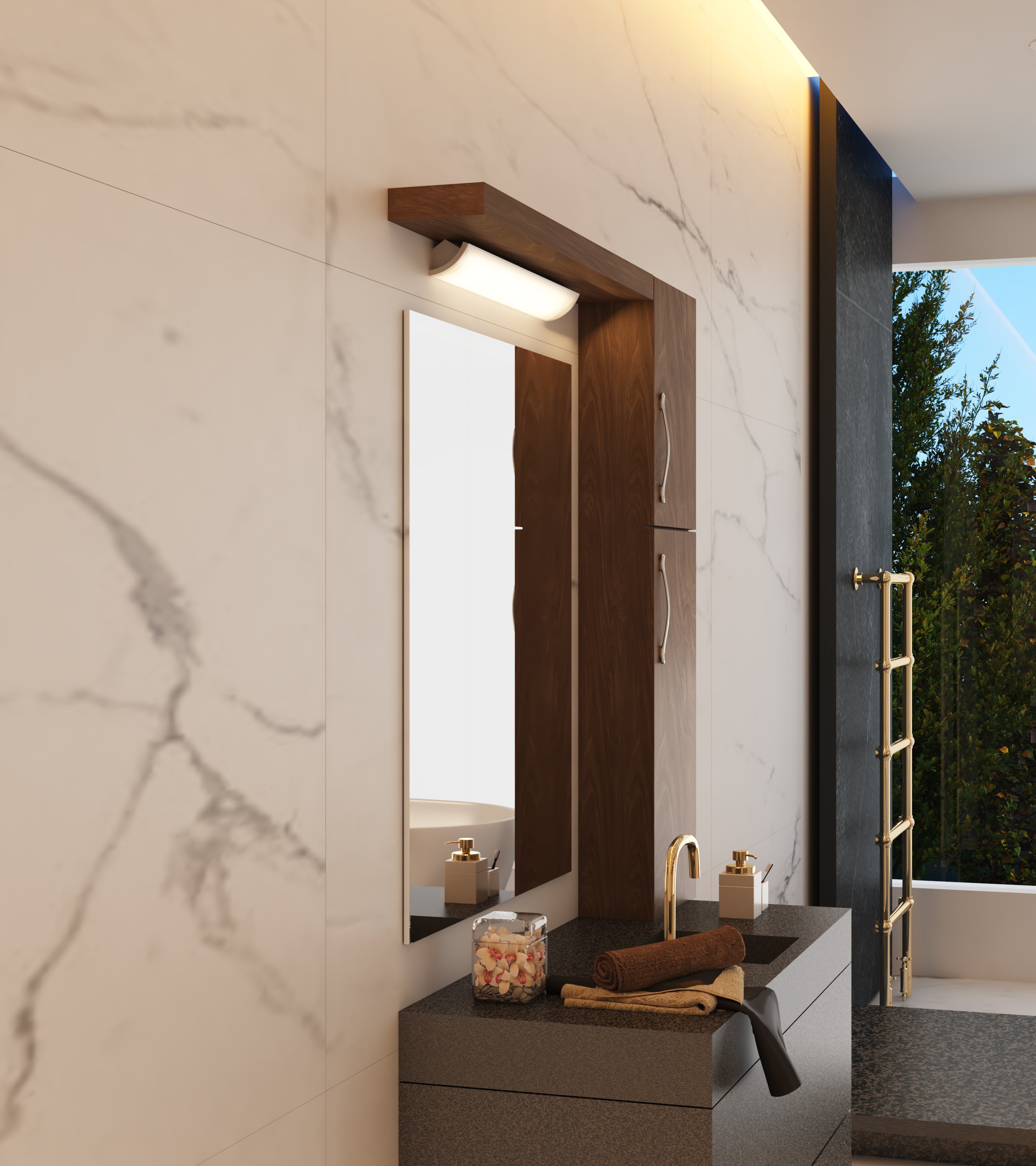 Réglette IP44 autorisée Volume 2, blanc, diffuseur opale, avec interrupteur, tube T5 LED 50000H 7W 4000K inclus, 495 lumens sortants