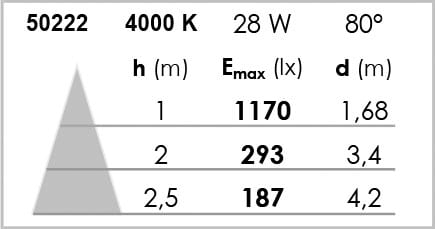 faible éblouissement selon EN 12464-1 (UGR Inf. à 19):