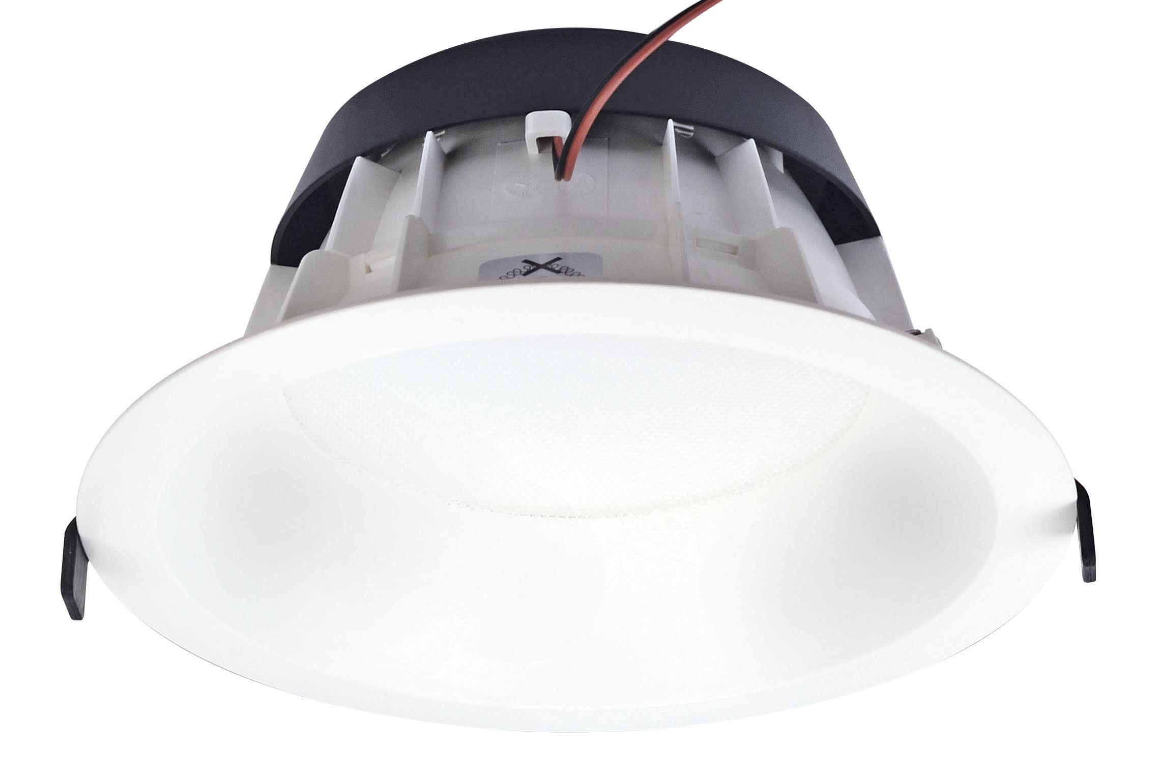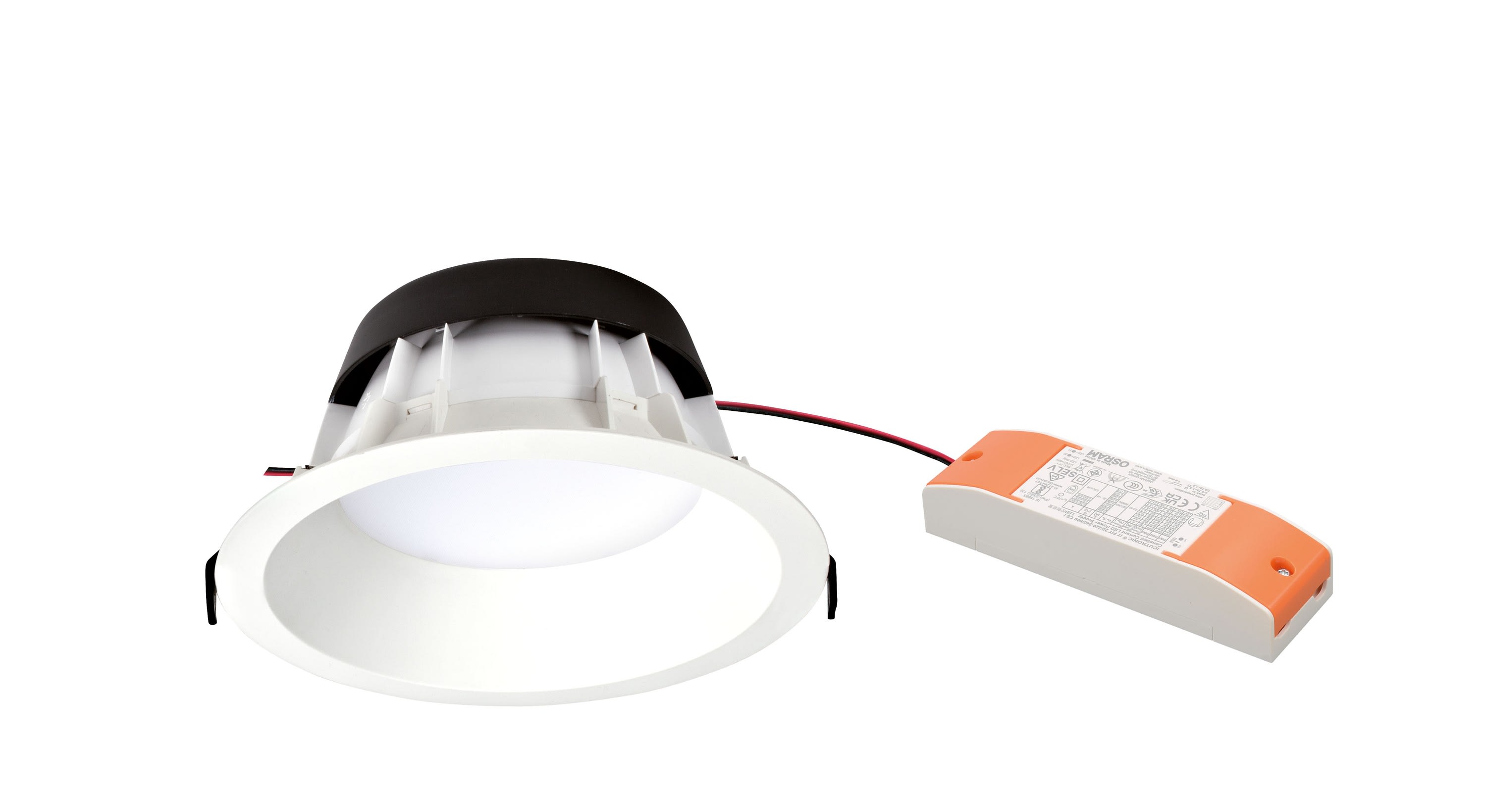 HARDEN - Downlight IP54 Vol.2 LED intég. 24W 80° CCT 3000-4000K 3000lm, dimmable par coupure de phase, 60000h L80/B50, bon confort visuel (UGR22 + flicker free). Corps polycarbonate blanc, boite de connexion repiquable sans outil.