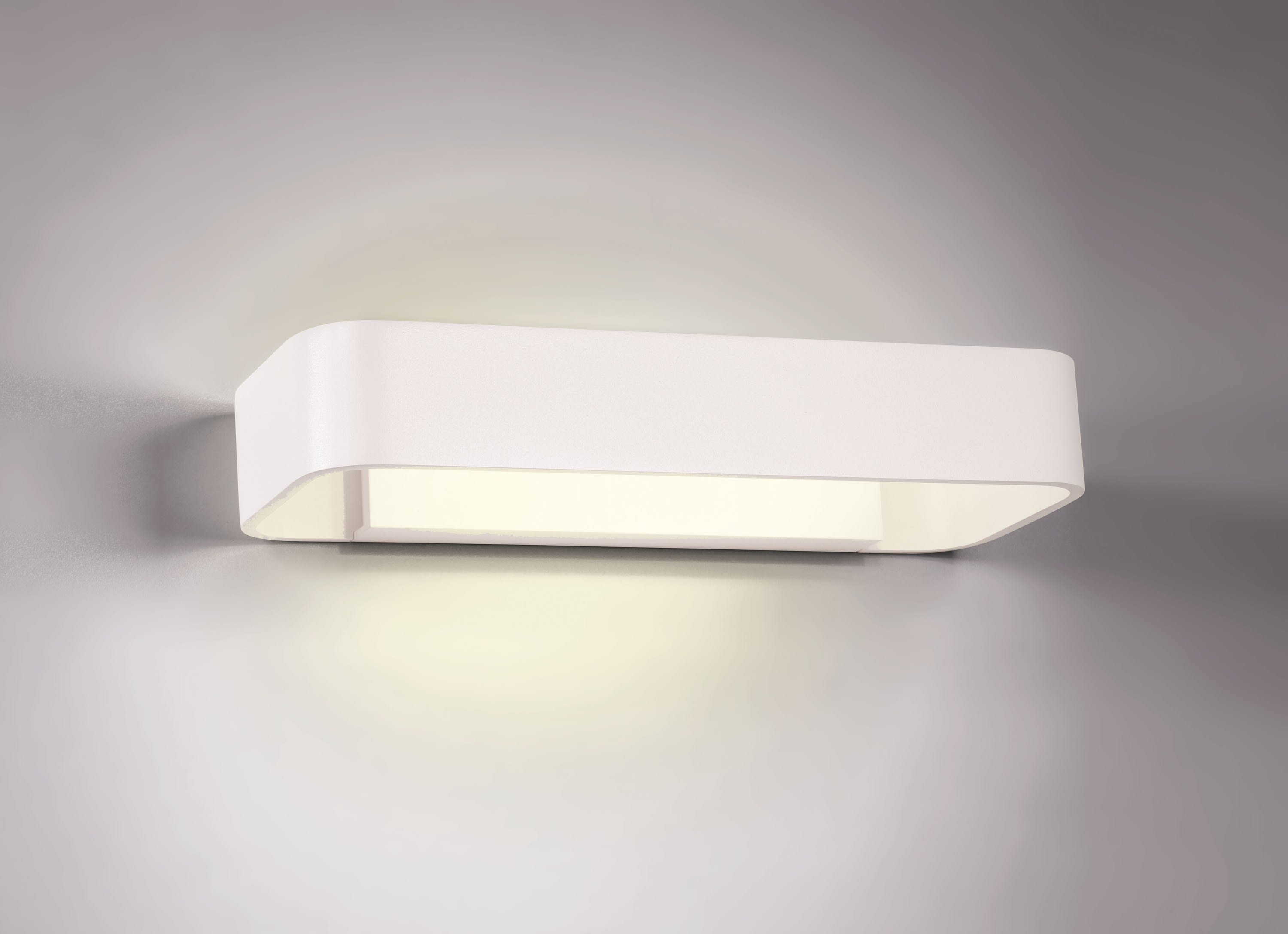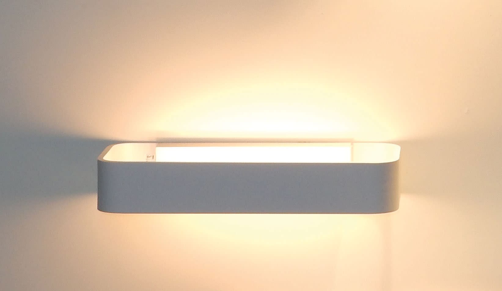 Applique murale intérieure IP20, en aluminium blanc, avec LED intégrée 8W 3000K, flux réel 500 lumens, éclairage direct/indirect.