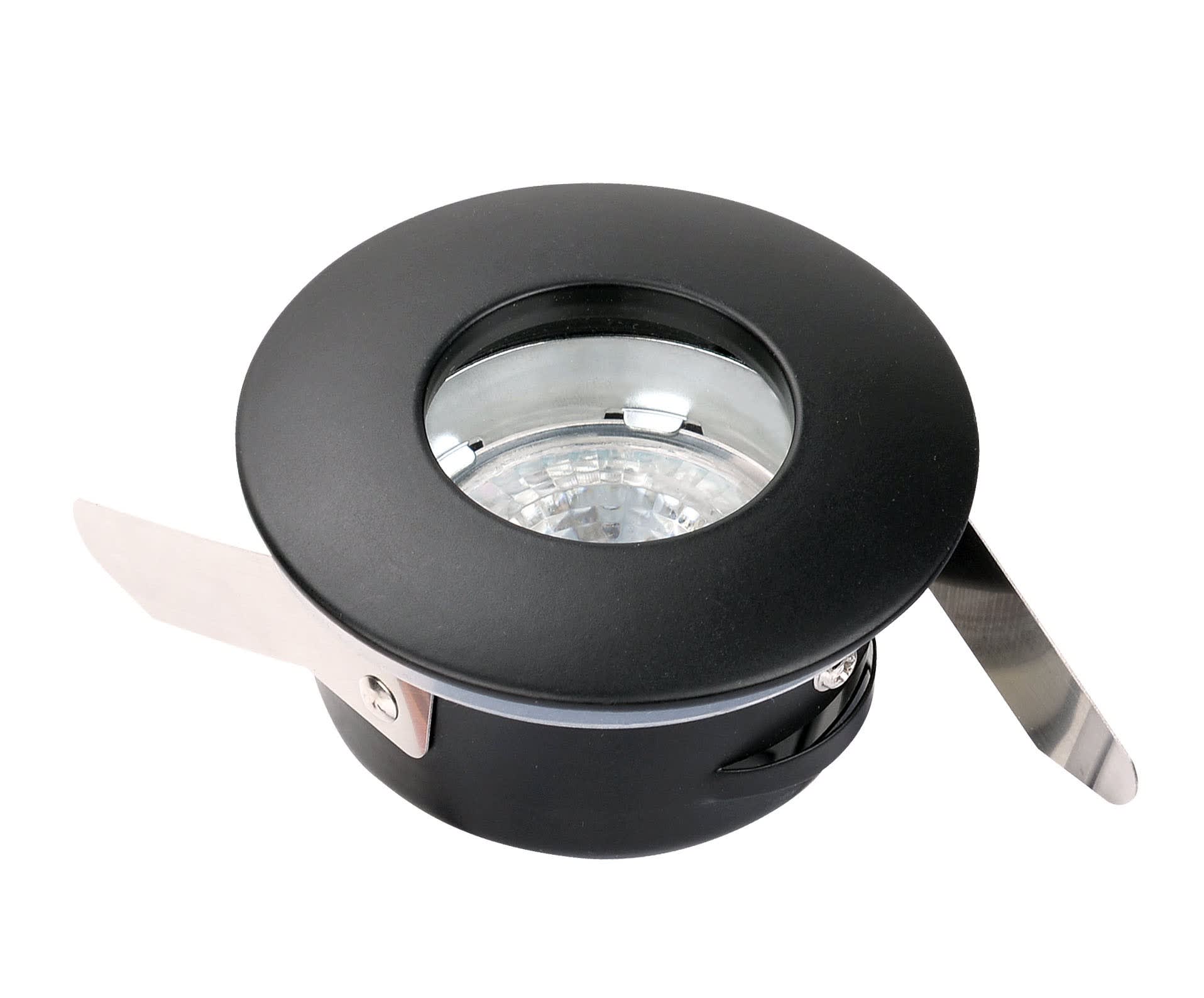 Encastré GU5,3, rond Ø86mm, noir, IP20/65, Classe 3, autorisé Volume 1, fourni avec lampe LED 5,3W 36° 4000K 460 lumens 15000H (flux sortant appareil 380lm) et Alimentation Classe 2, IP20.