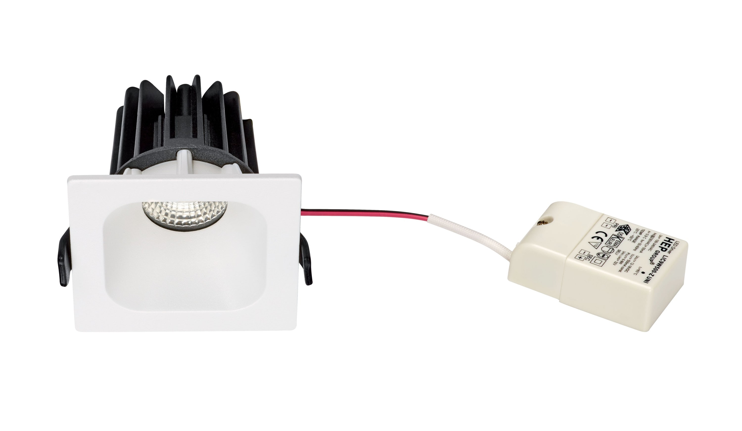 Downlight IVARO carré blanc, IP20/54, LED intégrée 30° 8,5W 4000K 850 lumens. Alimentation Classe 2, IP20/54. Spot Classe 3. Autorisé volume 1.