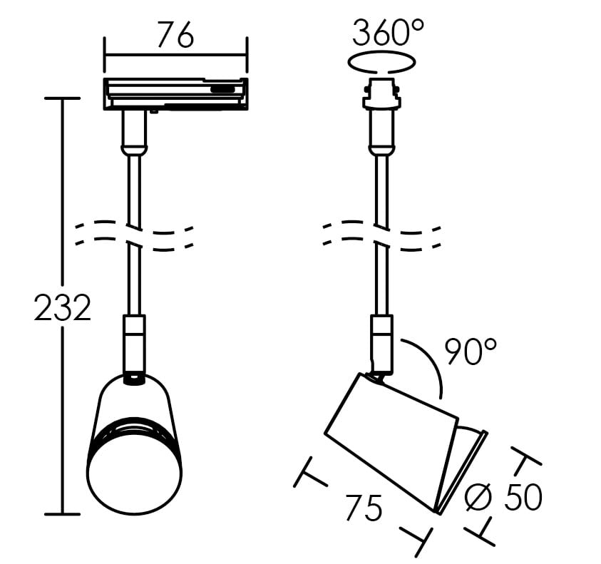 Spot JUDY pour Rail 1 allumage 029 GU10, blanc avec tige, lampe LED 3,6W 3000K 400 lumens, 25000H, variable fournie