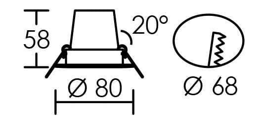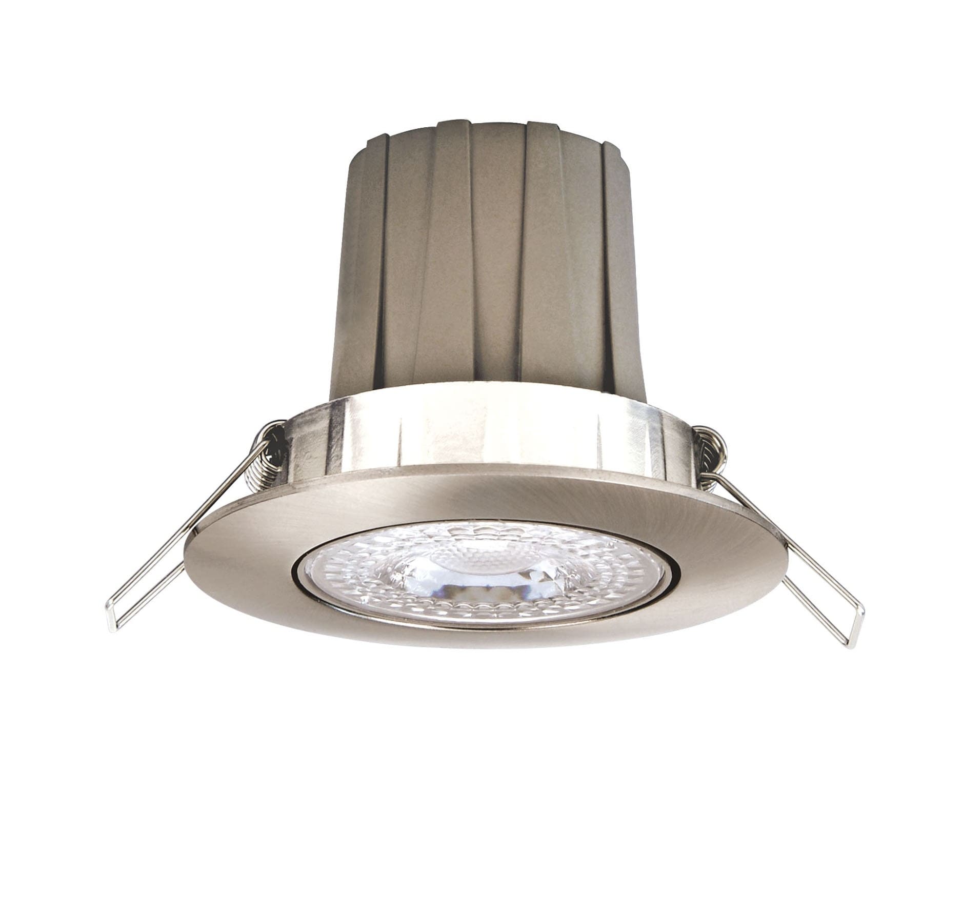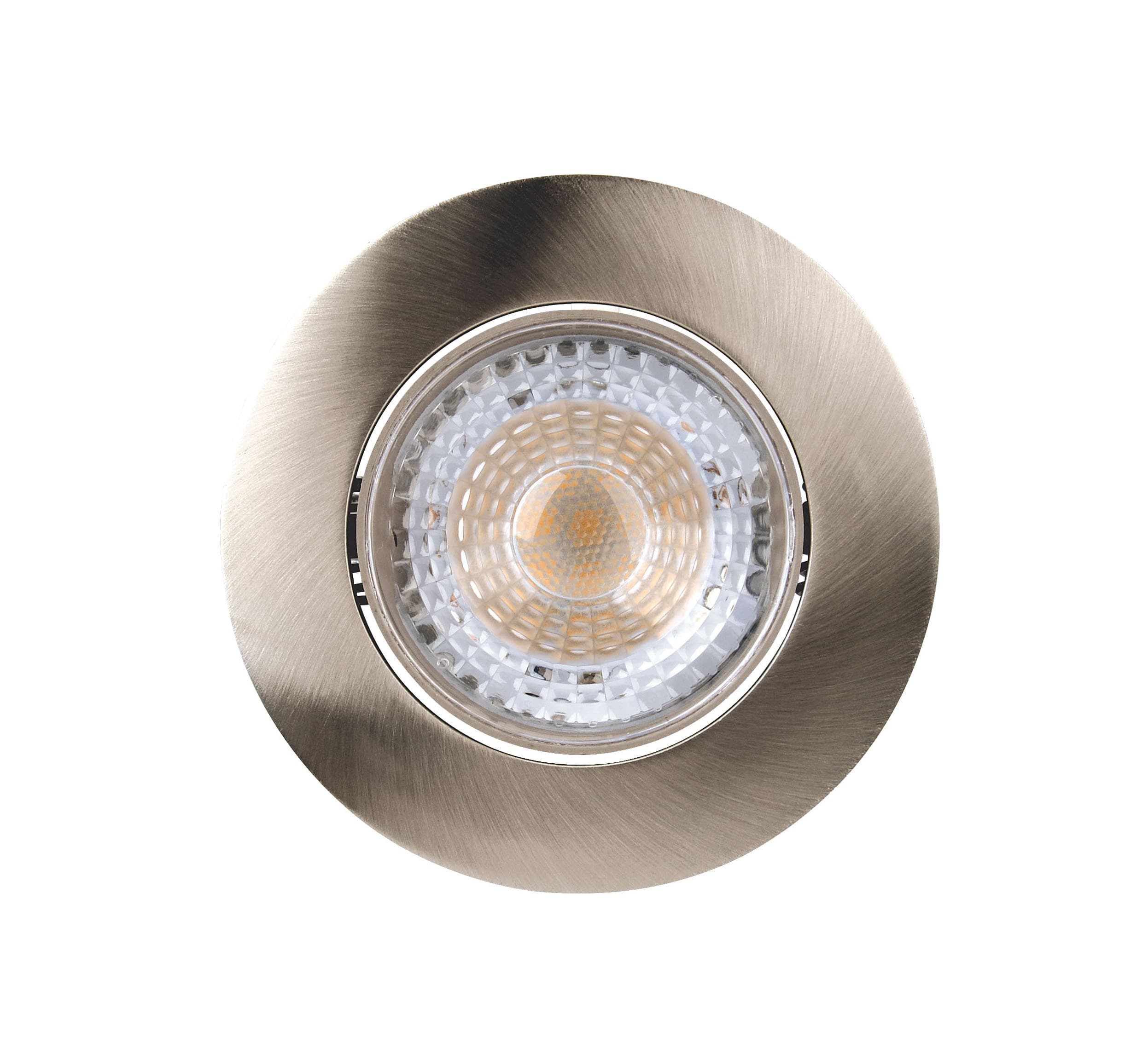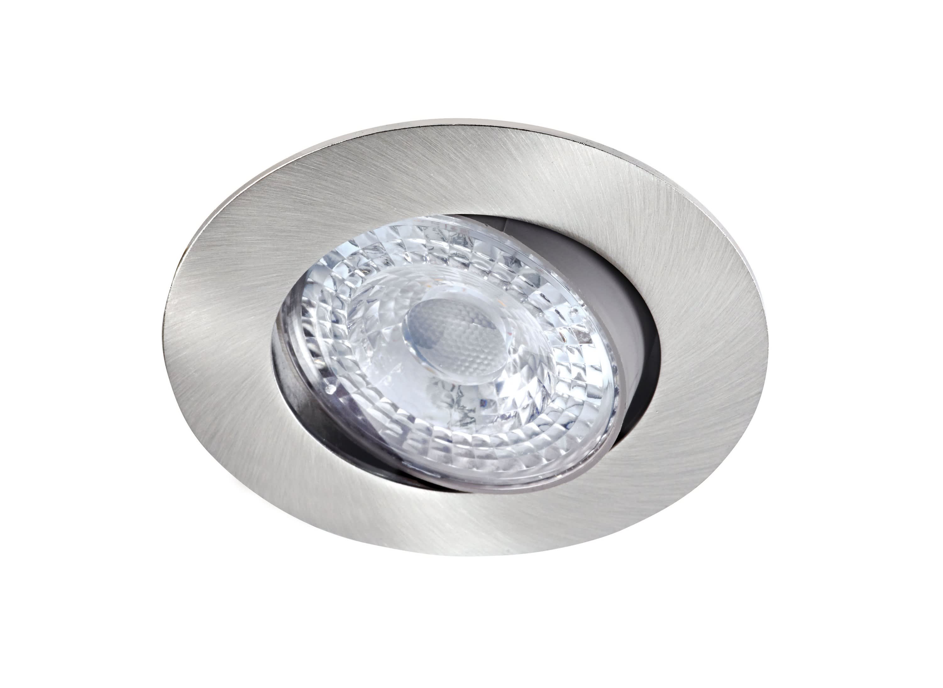 Encastré Ø80mm, basculant à 20°, nickel, LED intégrée 8W 45° 3000K 680 lumens, UGR <22, variable par coupure de phase, 25000H