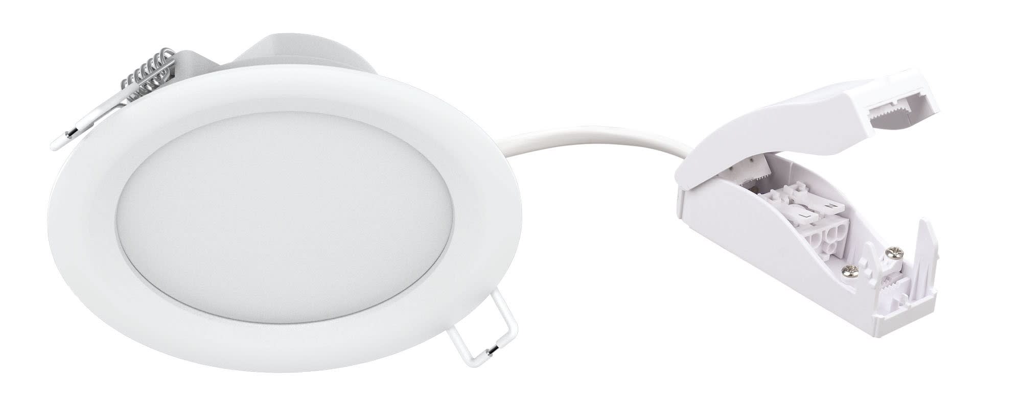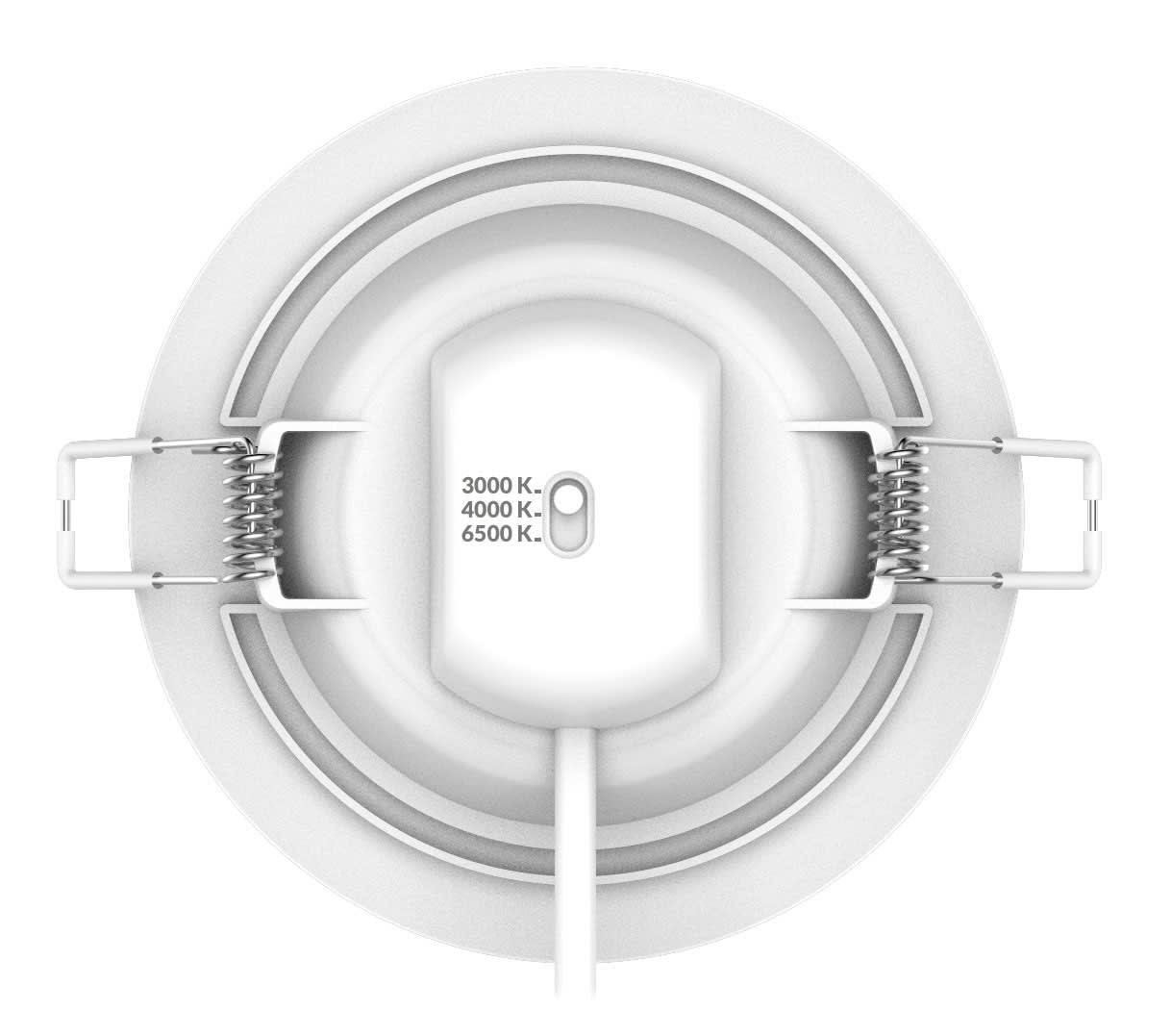 Spot encastré KIMI 100 8W CCT 3-4-6500K, Technologie CCT 3 couleurs : 3000 K / 4000 K / 6500 K, Précâblage 20 cm avec boite de connexion repiquable sans outil, Driver intégré, Utilisation résidentielle préconisée