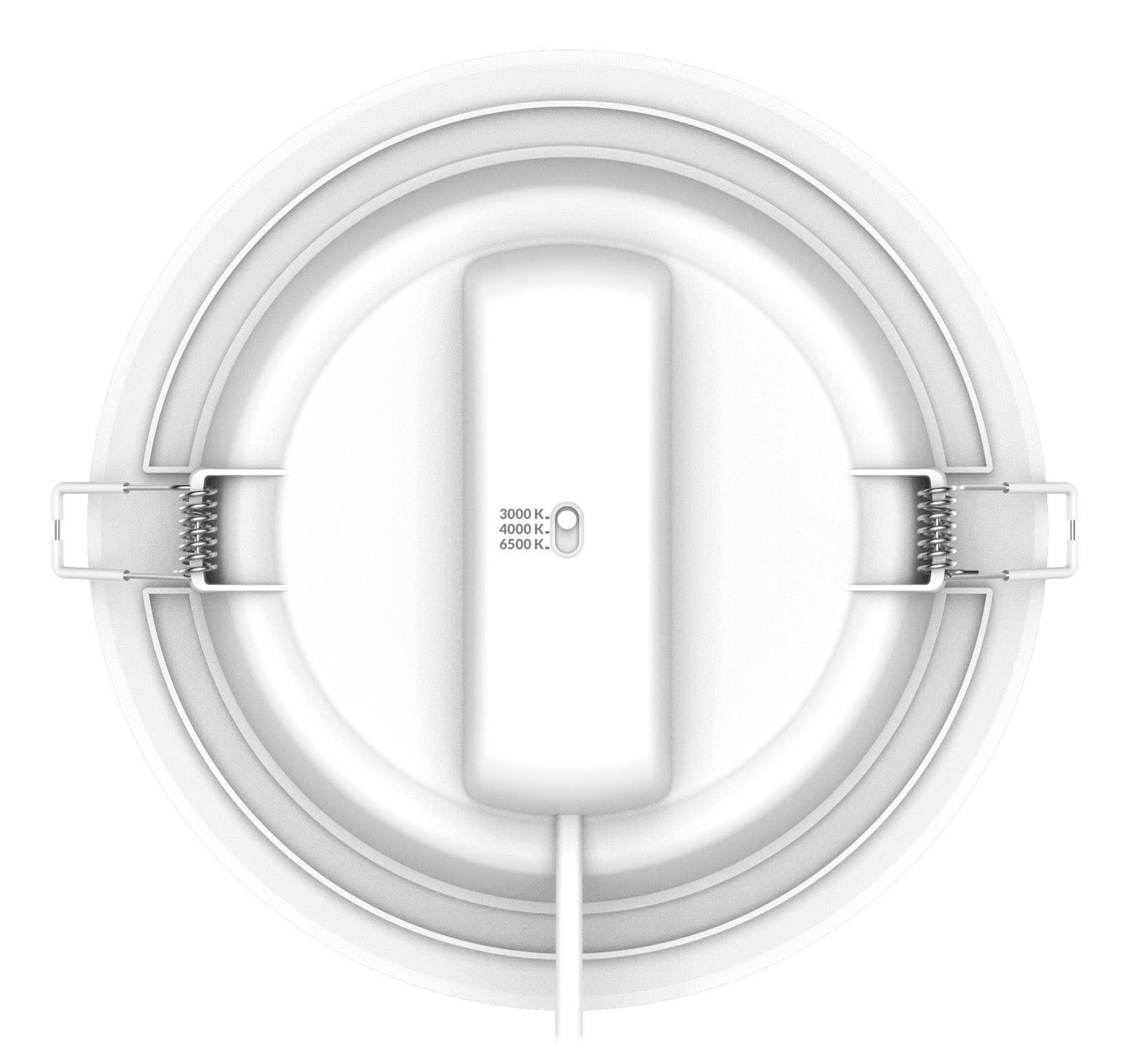 Spot encastré KIMI 175 20W CCT 3-4-6500K, Technologie CCT 3 couleurs : 3000 K / 4000 K / 6500 K, Précâblage 20 cm avec boite de connexion repiquable sans outil, Driver intégré, Utilisation résidentielle préconisée
