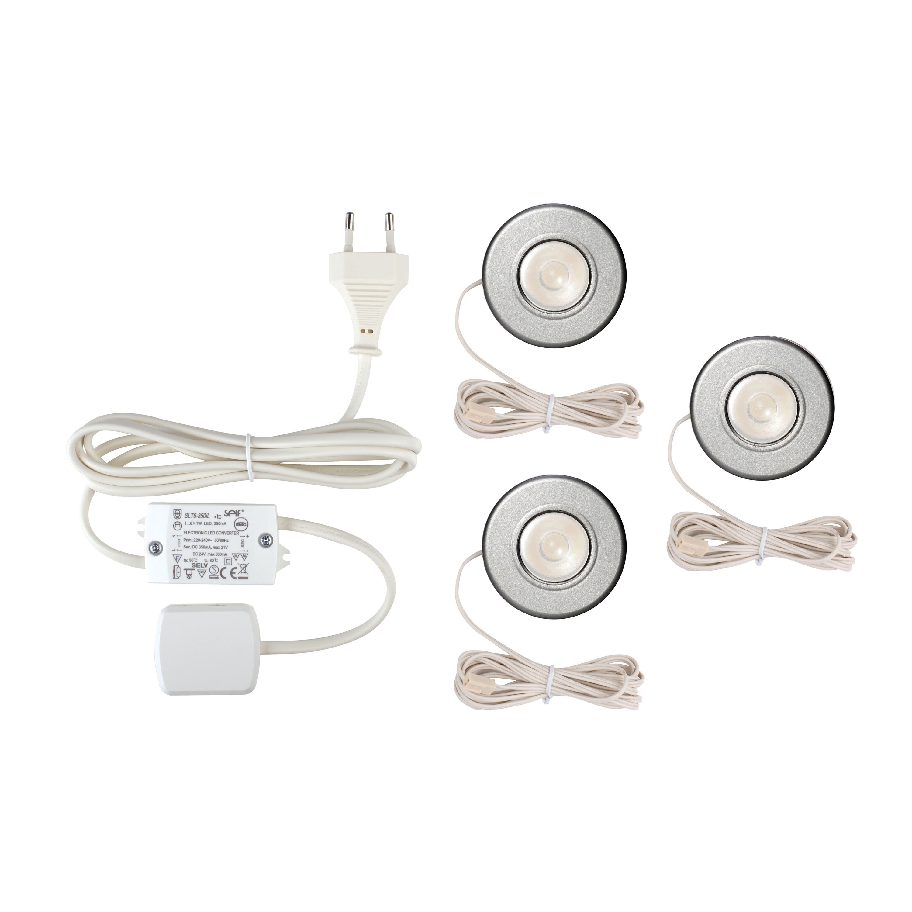Kit SPARK comprenant : 3 spots miniatures Ø12mm à LED intégrée 350mA, 3x1W 3000K 3x100 lumens + une alimentation 350mA CC + une boite de jonction