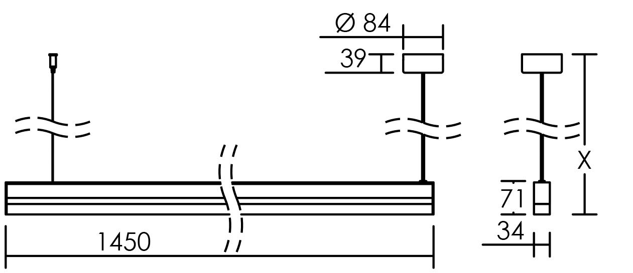Aric - LINEAR - Suspension, 1450mm, blanc, LED intég. 29W 4000K 2800lm - 50607