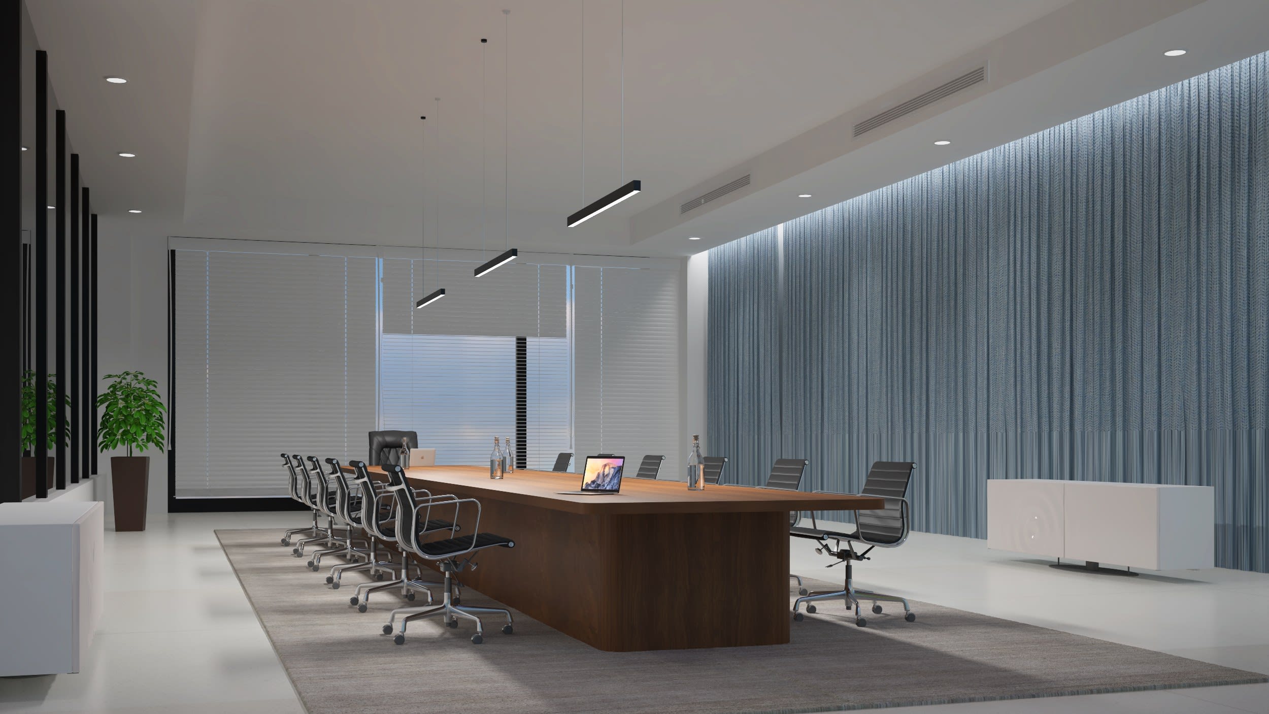 Suspension en aluminium noir, lg 1450mm, LED intégrée 33W 3000K 2500 lumens