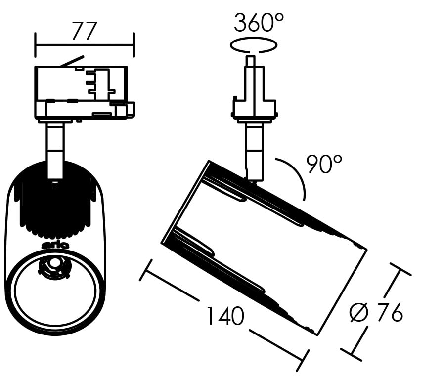 Projecteur avec adaptateur pour rail 3 allumages 023, blanc, faisceau 42°, LED intégrée 22,5W 4000K 2400 lumens IRC90 50000h