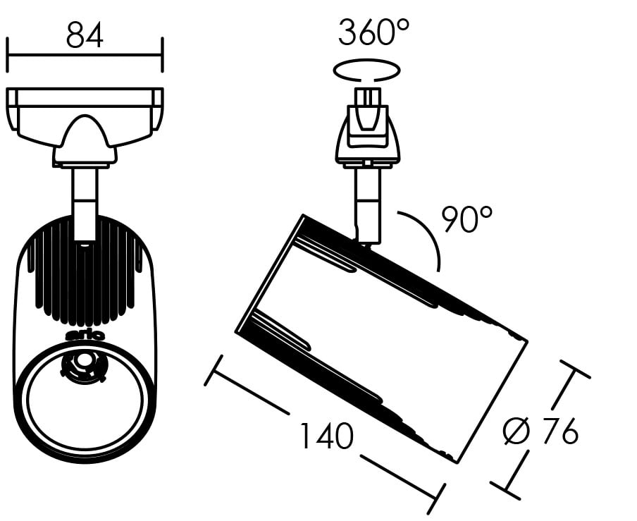 Aric - LUMI 029 - Proj. Rail 1 all.029, noir, angle 42°, LED intég. 22,5W 3000K 2100lm - 50184