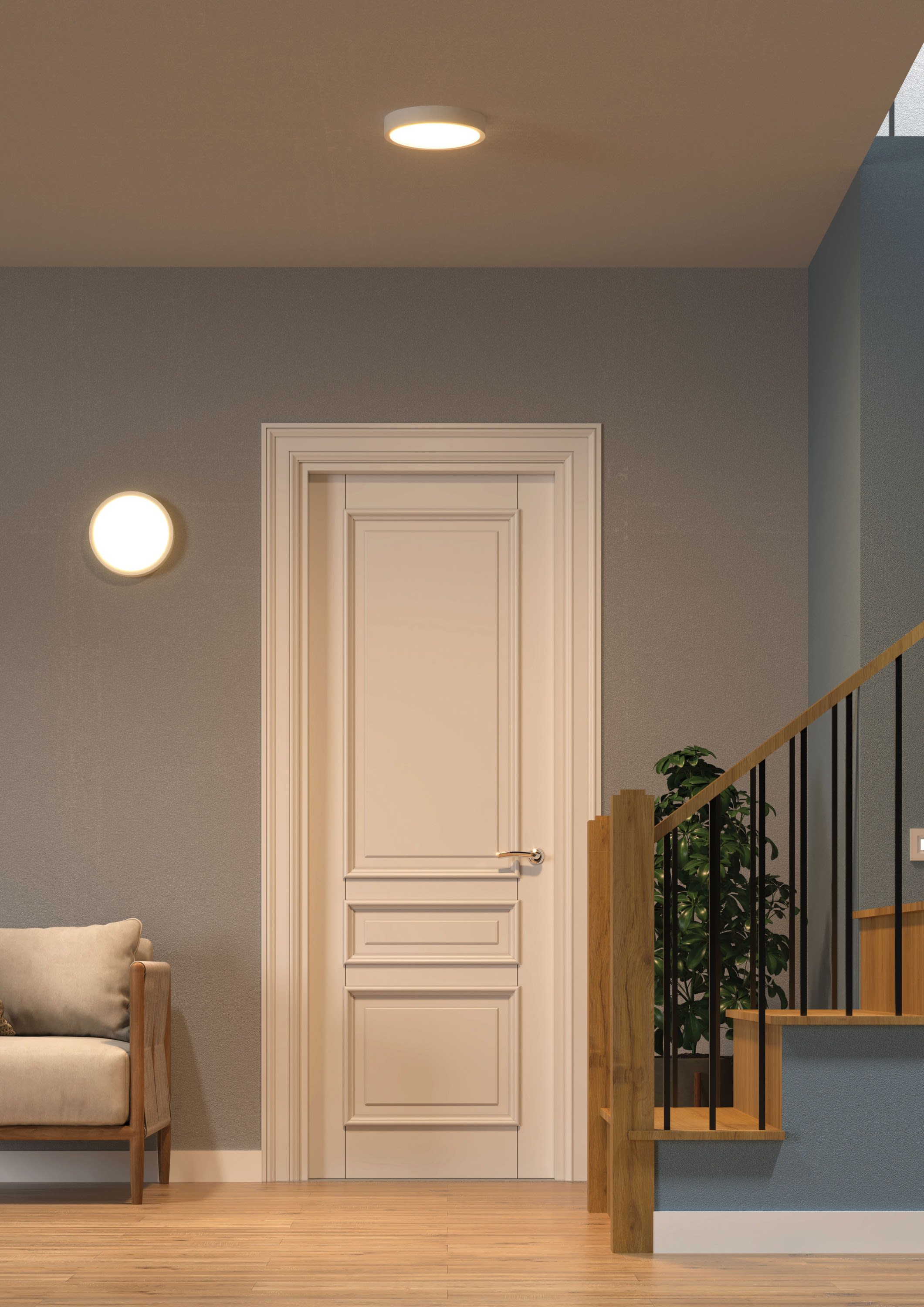 Indice de protection IP65 et résistance mécanique IK10 - Fonction 3 CCT : 3000K / 4000K / 5700K - Utilisation possible en intérieur et extérieur - Repiquable, raccordement possible à l’arrière du produit ou sur le côté