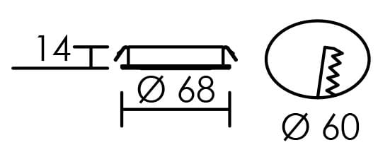 Encastré IP44, rond, Ø65mm épaisseur 11mm, fixe, aluminium, LED intégrée 1,7W 3000K 150 lumens. Précâblage 2,5 m avec connecteur.