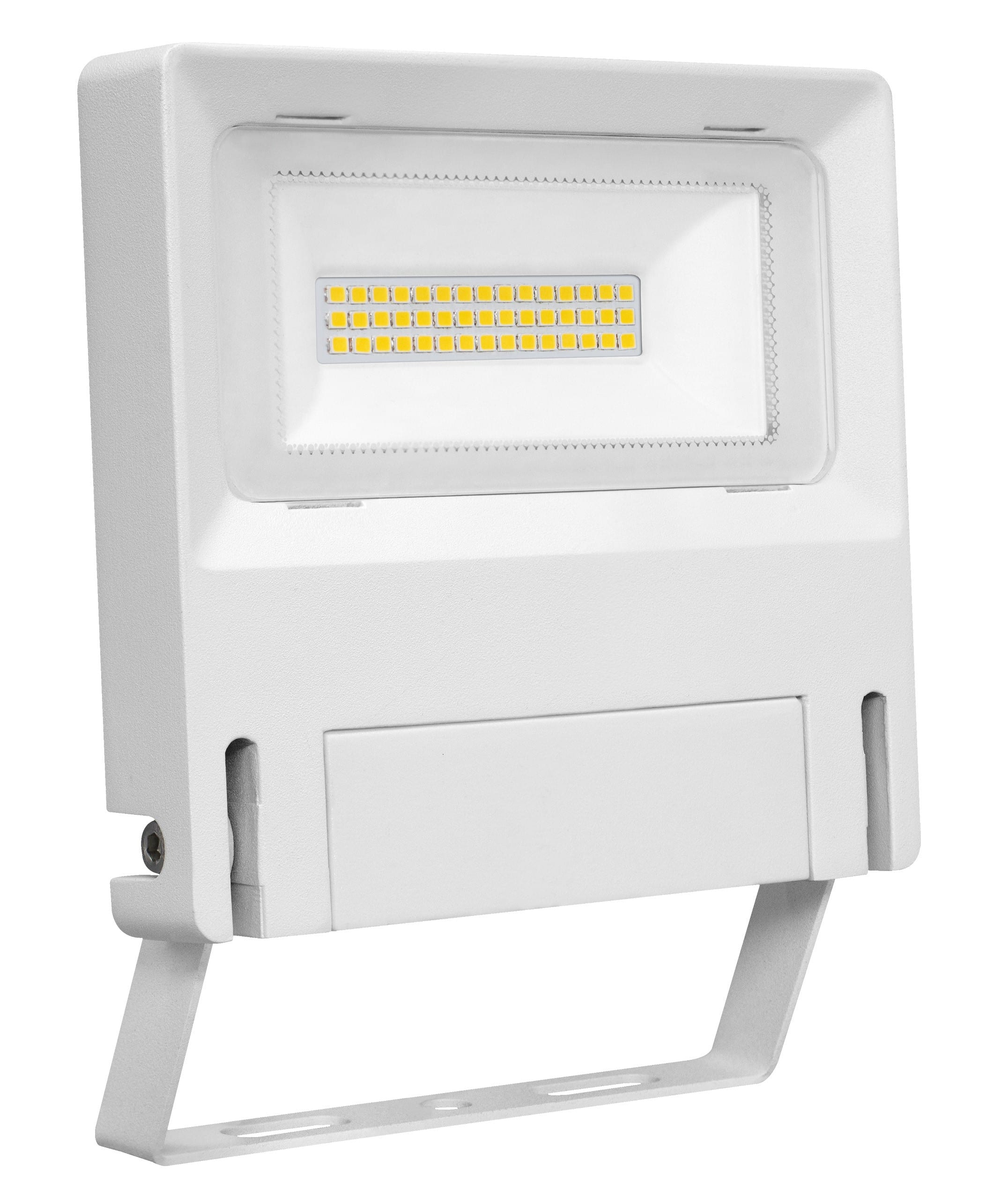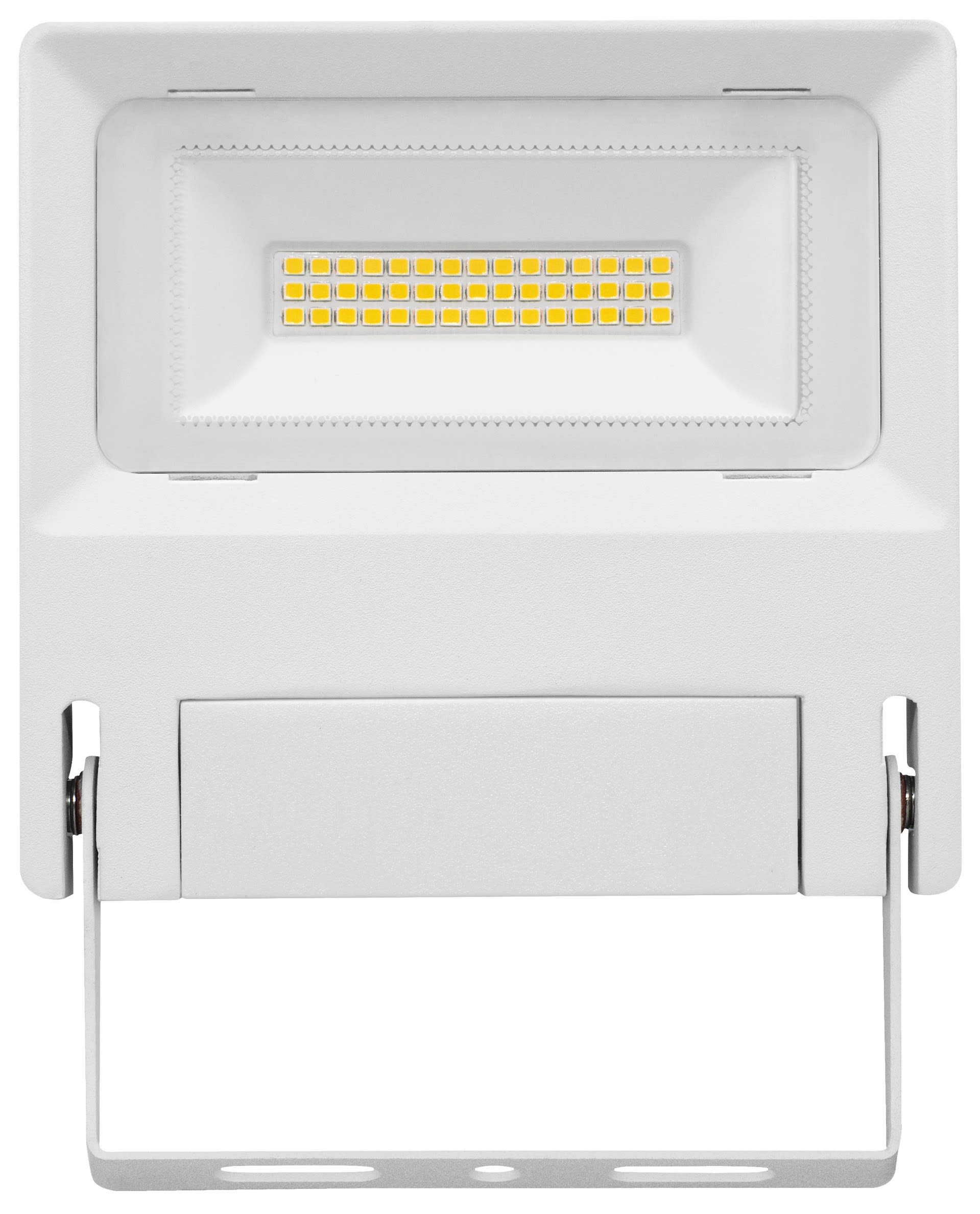 Projecteur extérieur LED IP65 IK08, blanc, symétrique, faisceau 110° LED intégré 30W 3250K, flux sortant 3250 lumens (IRC >80), durée de vie 35500h, test BS = 480h