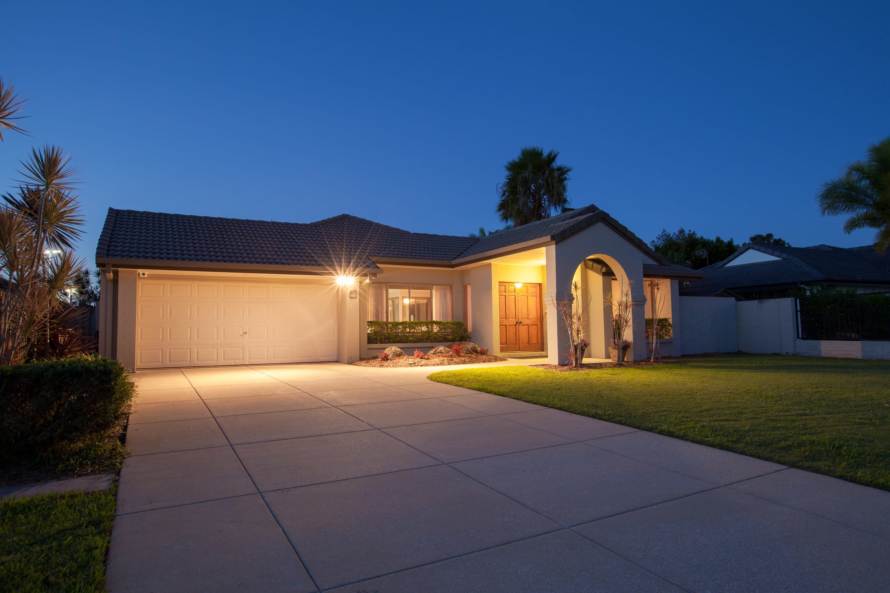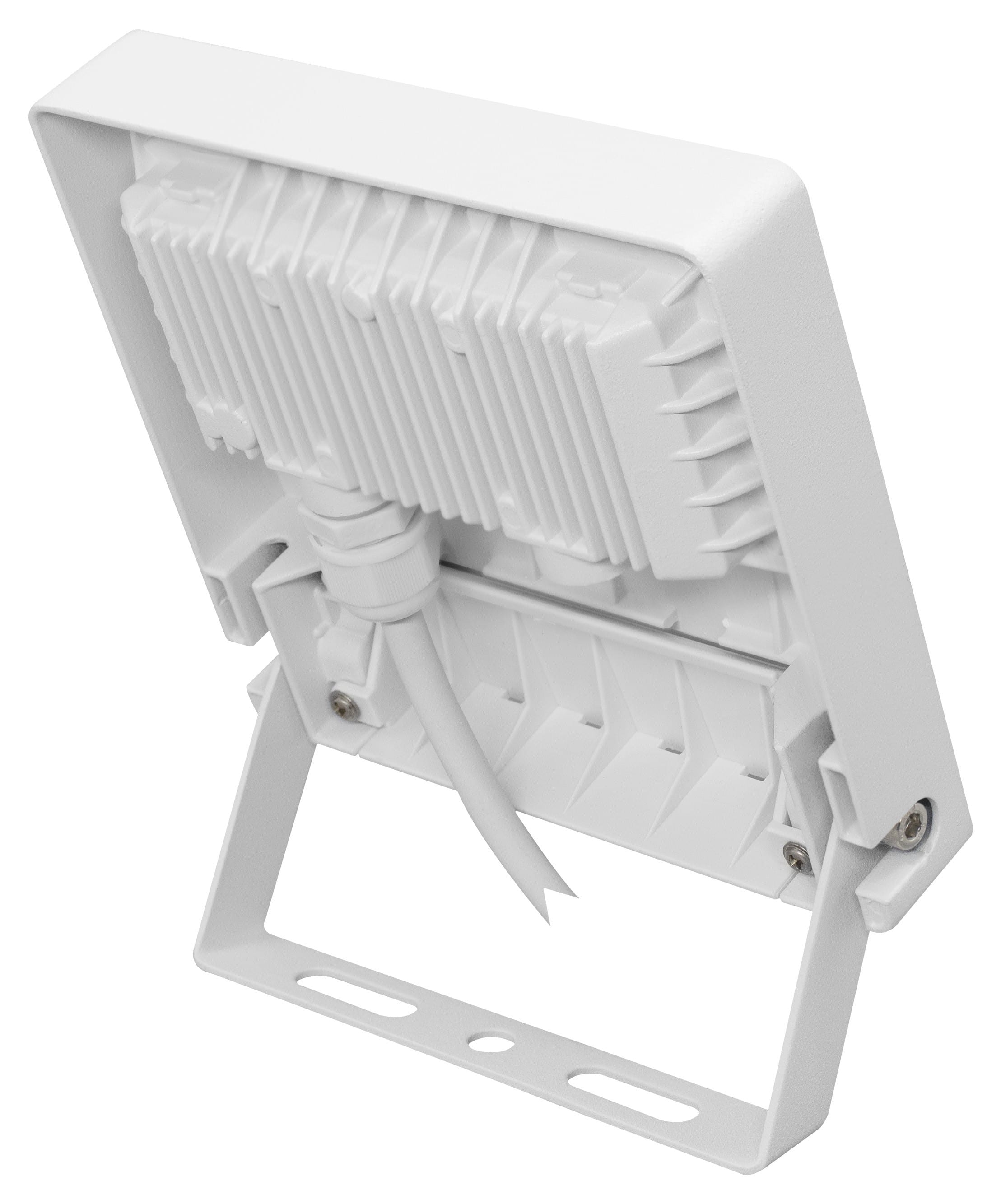 Projecteur extérieur LED IP65 IK08, blanc, symétrique, faisceau 110° LED intégré 30W 3000K, flux sortant 3000 lumens (IRC <80), durée de vie 35000h, test BS = 480h