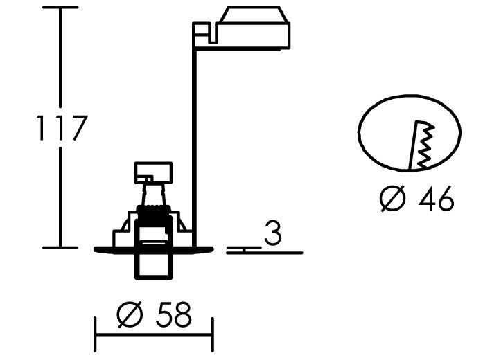 • hauteur/profondeur d'encastrement - 117 mm