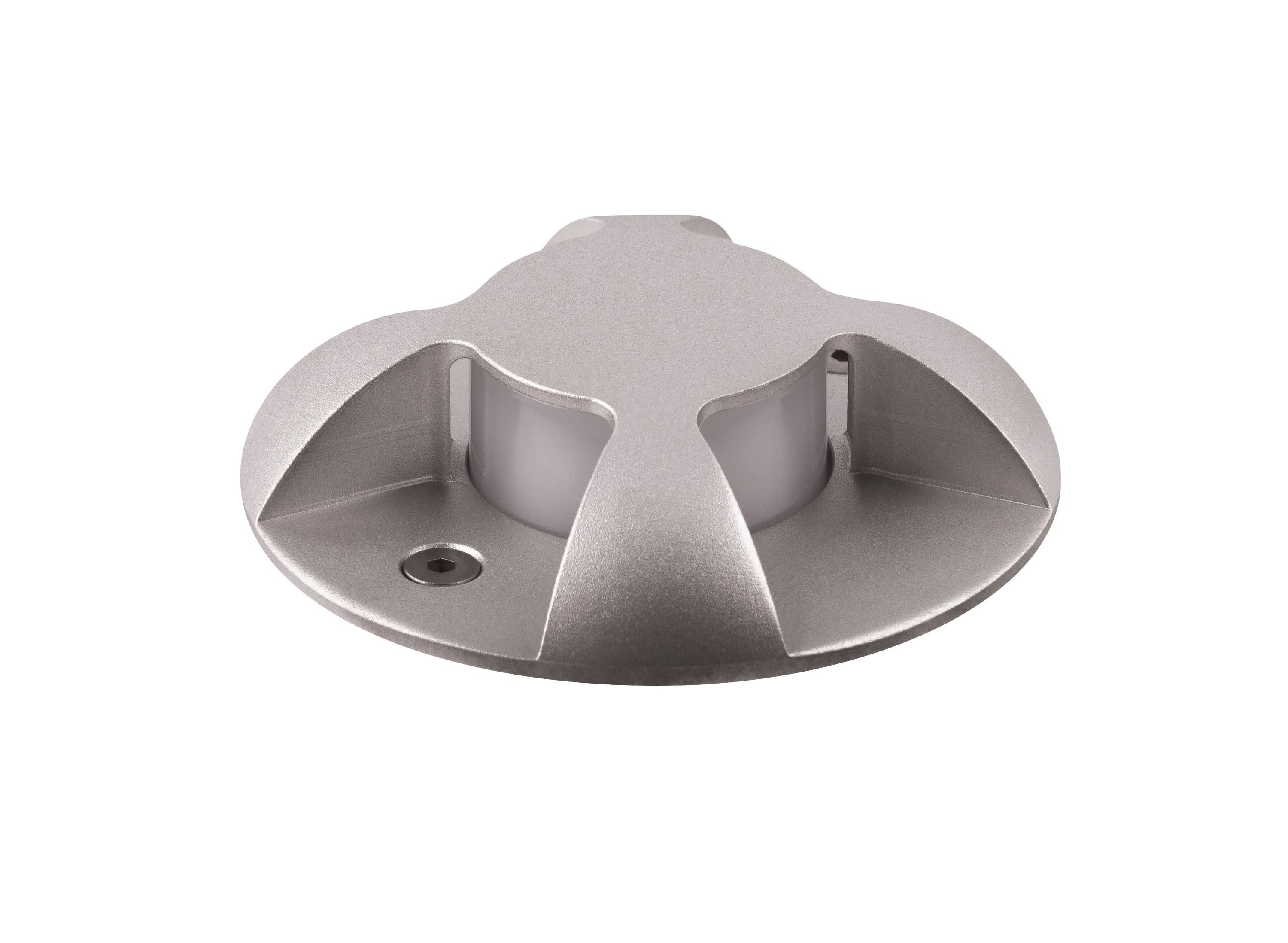 Encastré de sol Extérieur IP67 IK08, rond Ø80, avec diffuseur 4 directions couleur inox, LED 5W 3000K, 30000H