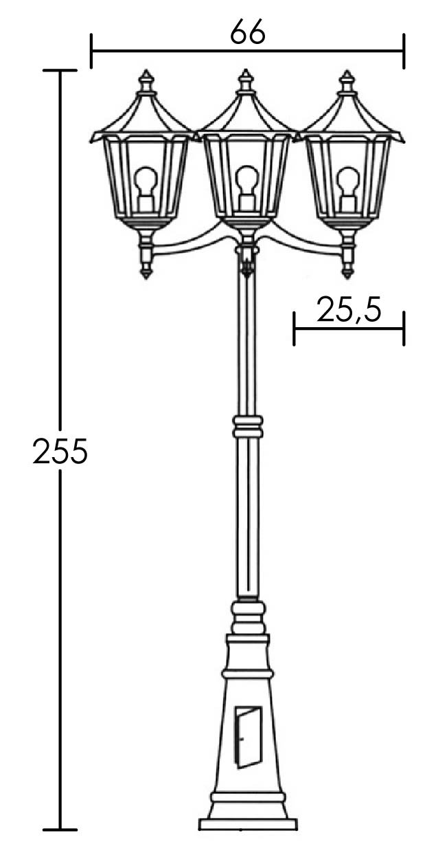 Lanterne sur Mât IP43 IK02, vert, E27 3x100W max., lampe non fournie, hauteur 2, 55m