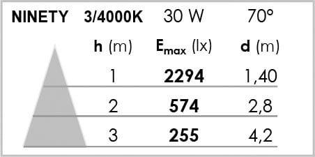 Le projecteur NINETY sur patère est un projecteur monobloc remarquable par sa fiabilité. La qualité de ces composants innovants et le soin apporté à son assemblage réalisé dans nos ateliers font de lui un produit reconnu pour l’éclairage commercial.Son diffuseur à facette 60° lui permet une diffusion large, pour éclairer une surface de presque 3m² à seulement 2 mètres de distance. Il conviendra aussi bien en éclairage d’ambiance qu’en éclairage d’accentuation.Avec une température de couleur de 3000K, blanc chaud, et son indice de rendu des couleurs supérieur à 95, il favorisera un rendu fidèle des produits mis en avant, ou simplement un éclairage d’ambiance naturel agréable.Son design monobloc avec driver intégré dans la patère facilitera son intégration dans tous types de décoration, et avec sa construction permettant une orientation horizontale du projecteur sur 360° et une orientation verticale jusqu’à 260°, il conviendra à tous types d’implantations.Sa conception lui confère un respect total des réglementations en vigueur comme la continuité de la terre sur l’ensemble des pièces de l’appareil, ainsi qu’une possibilité de maintenance facilitée. Son facteur de puissance et son THD faciliteront son intégration sur toutes les installations électriques.
