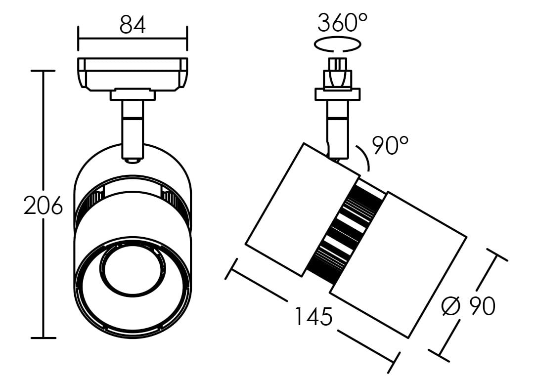 Le projecteur NINETY pour rail 1 allumage est un projecteur monobloc remarquable par sa fiabilité. La qualité de ces composants innovants et le soin apporté à son assemblage réalisé dans nos ateliers font de lui un produit reconnu pour l’éclairage commercial.Son diffuseur à facette 60° lui permet une diffusion large, pour éclairer une surface de presque 3m² à seulement 2 mètres de distance. Il conviendra aussi bien en éclairage d’ambiance qu’en éclairage d’accentuation.Avec une température de couleur de 3000K, blanc chaud, et son indice de rendu des couleurs supérieur à 95, il favorisera un rendu fidèle des produits mis en avant, ou simplement un éclairage d’ambiance naturel agréable.Son design monobloc avec son Driver « InTrack » totalement intégré dans le rail et compact facilitera son intégration dans tous types de décoration, et avec sa construction permettant une orientation horizontale du projecteur sur 360° et une orientation verticale jusqu’à 260°, il conviendra à tous types d’implantations.Sa conception lui confère un respect total des réglementations en vigueur comme la continuité de la terre sur l’ensemble des pièces de l’appareil, ainsi qu’une possibilité de maintenance facilitée. Son facteur de puissance et son THD faciliteront son intégration sur toutes les installations électriques.
