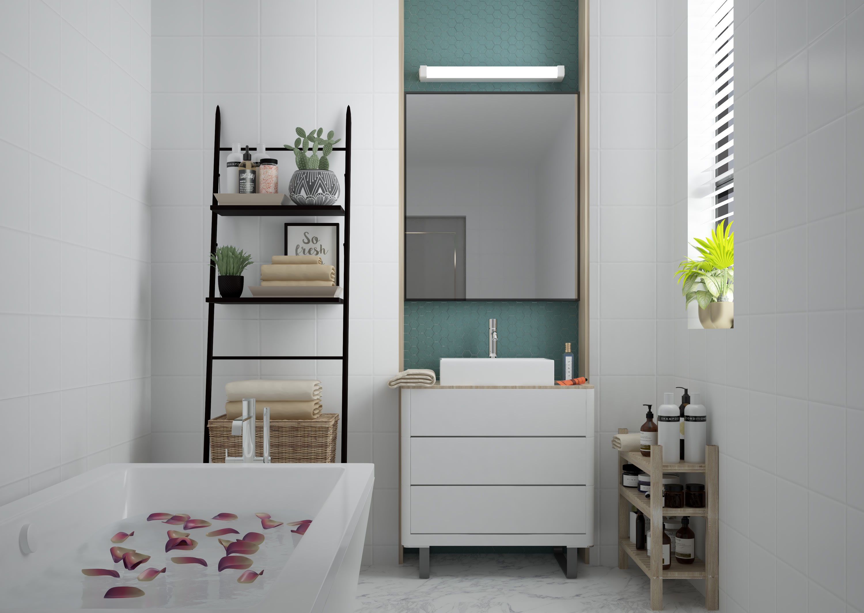 Réglette ONDINE G13 IP44 IK07, autorisée Volume 2, avec tube T8 LED 9W 4000K 650 lumens, 650lm sortants (vasque opaline - LOR =75%)