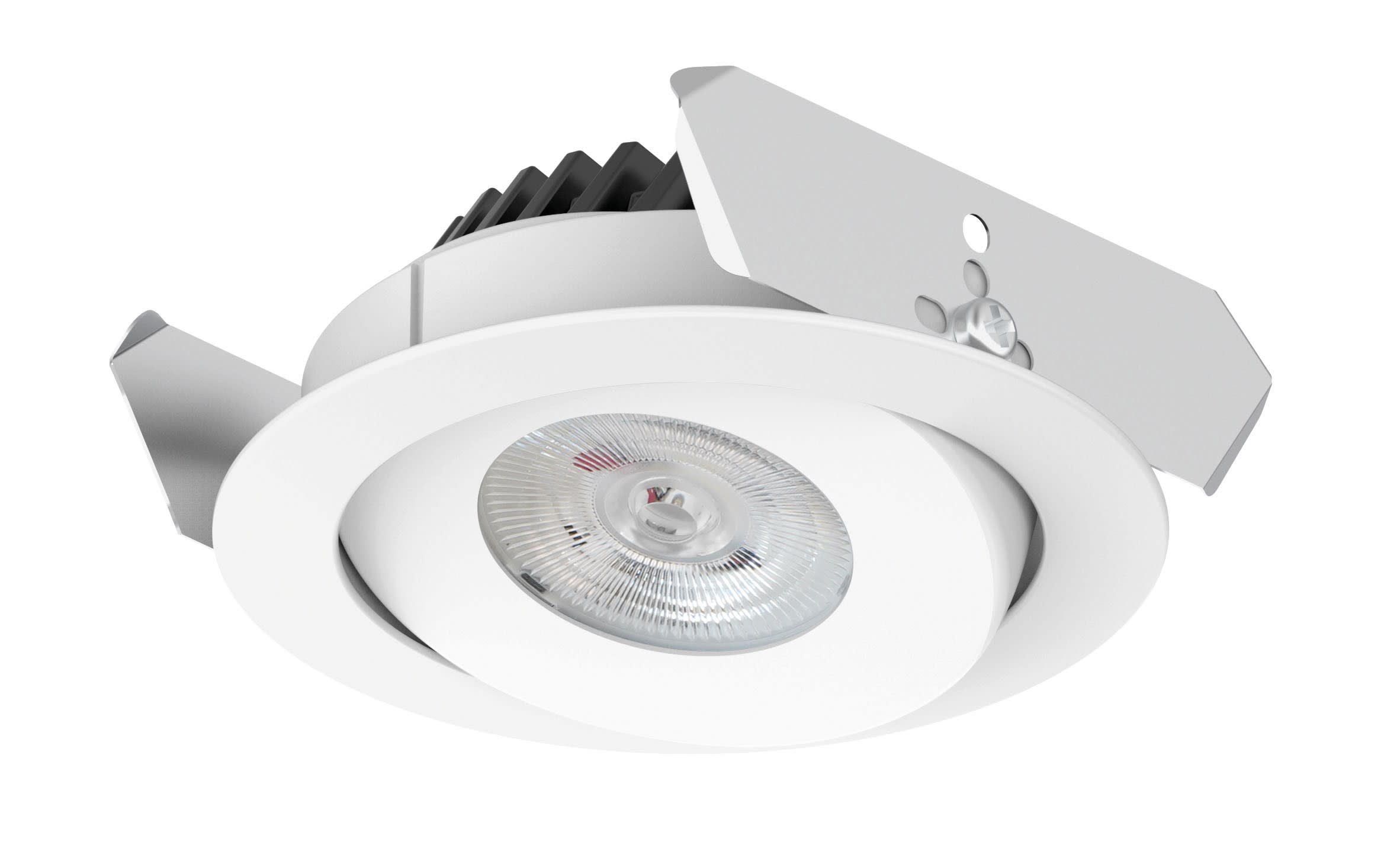 Spot encastré architectural OSLO 4,4W 36° 3000K CRI90, Compact : épaisseur 22 mm / encastrement 68 mm, IRC 90, Basculant 20°, Driver séparé fourni, collerette fine