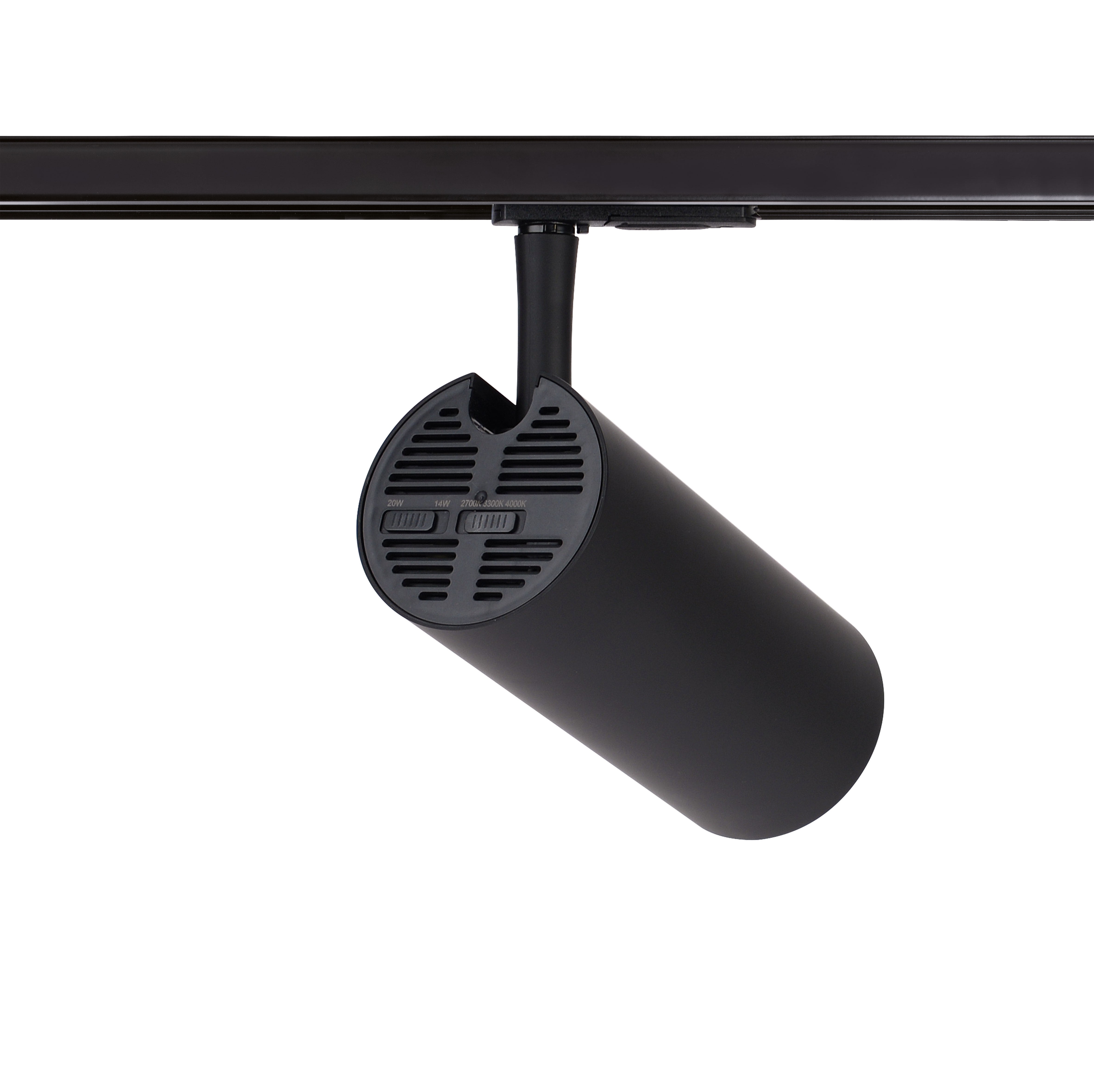 Pour l'éclairage commercial, nouveau luminaire sur rail monophasé, POLARIS 029 45° 14/20W 3CCT NOIR, Deux puissances réglables à l’arrière du spot, Technologie CCT : 2700 K / 3300 K/4000 K Interrupteur à l’arrière du spot, Éclairage sans scintillement, Éclairage à 45°