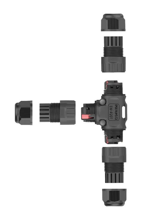 Raccord 3 câbles connecteur linéaire 3 pôles IP68 450V - 16A (RLT2 3P) avec connecteurs automatiques
