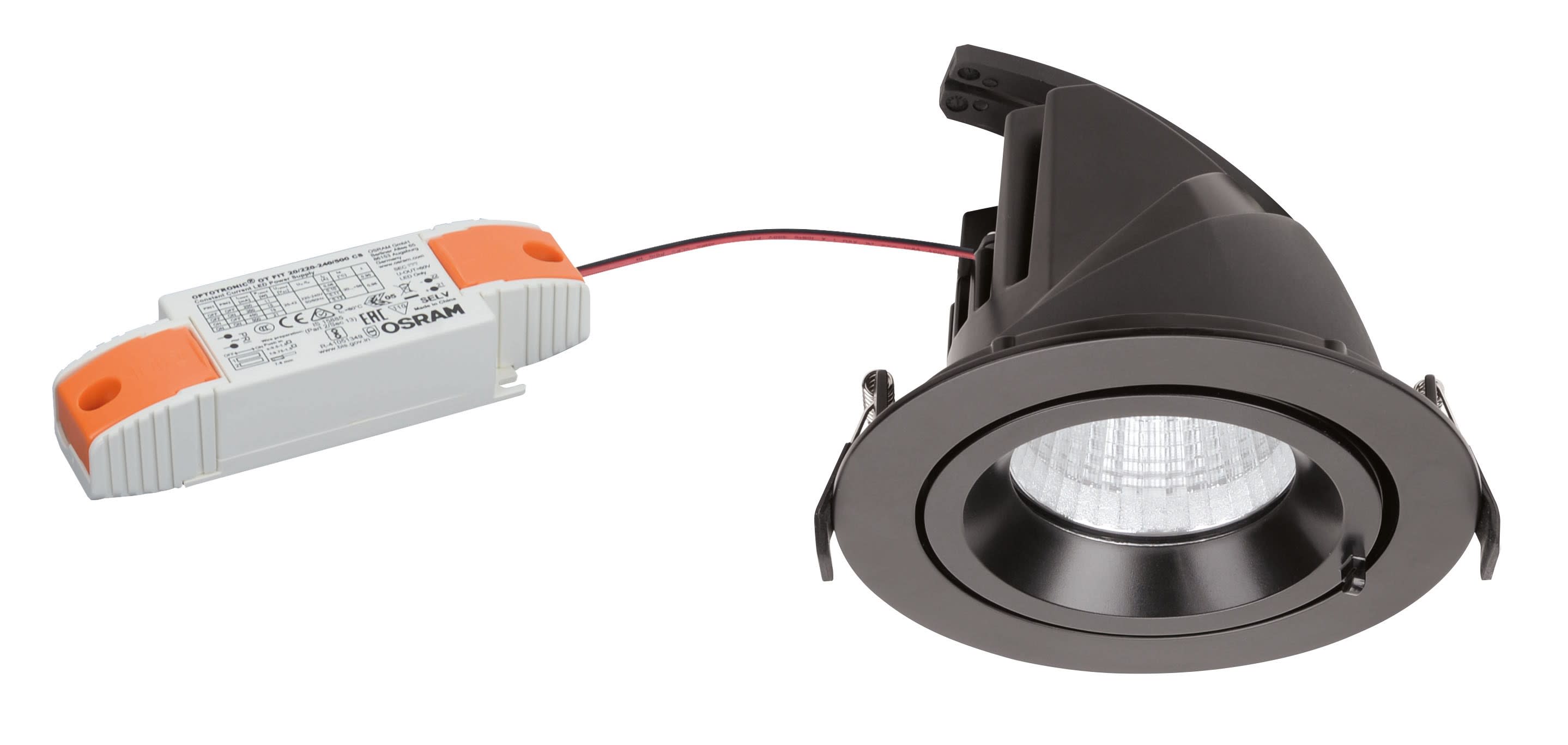 Downlight rond, orientable, en aluminium noir, 70°, LED intégrée 29,3W 3000K 3000 lumens 50000h avec boite de connexion repiquable sans outil