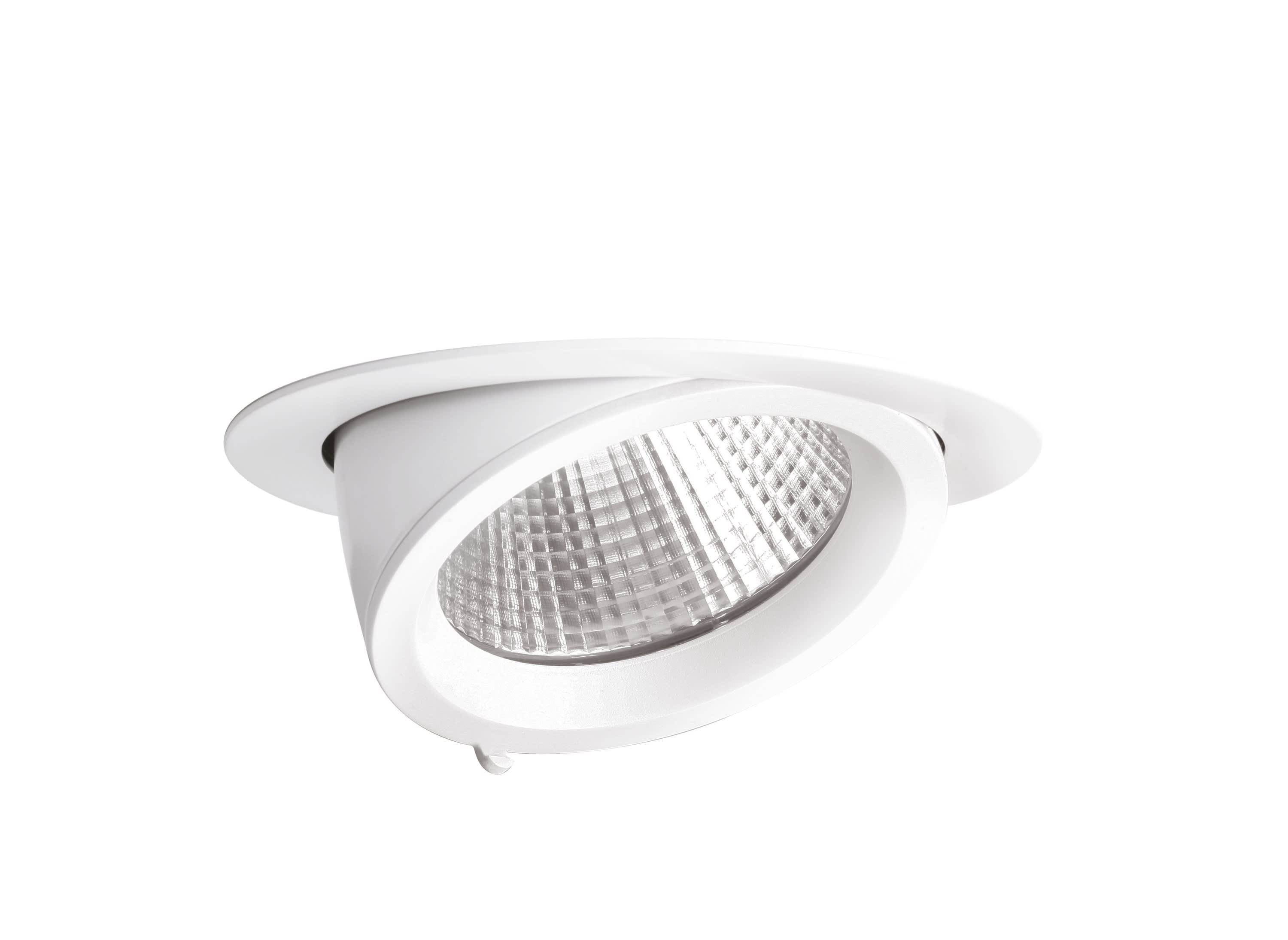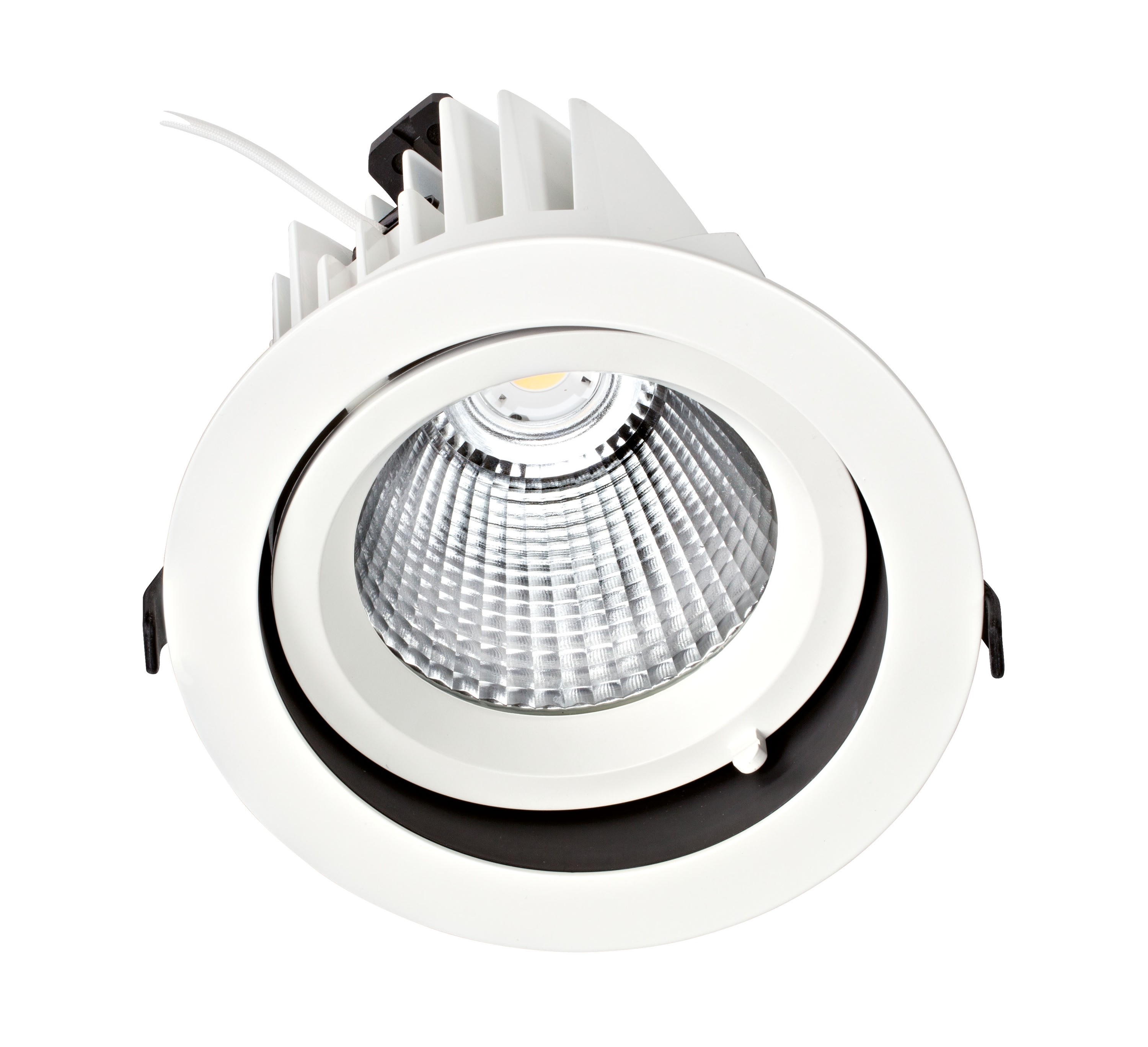 Downlight rond, orientable, en aluminium blanc, 70°, LED intégrée 41W 3000K 4000 lumens 50000h avec boite de connexion repiquable sans outil