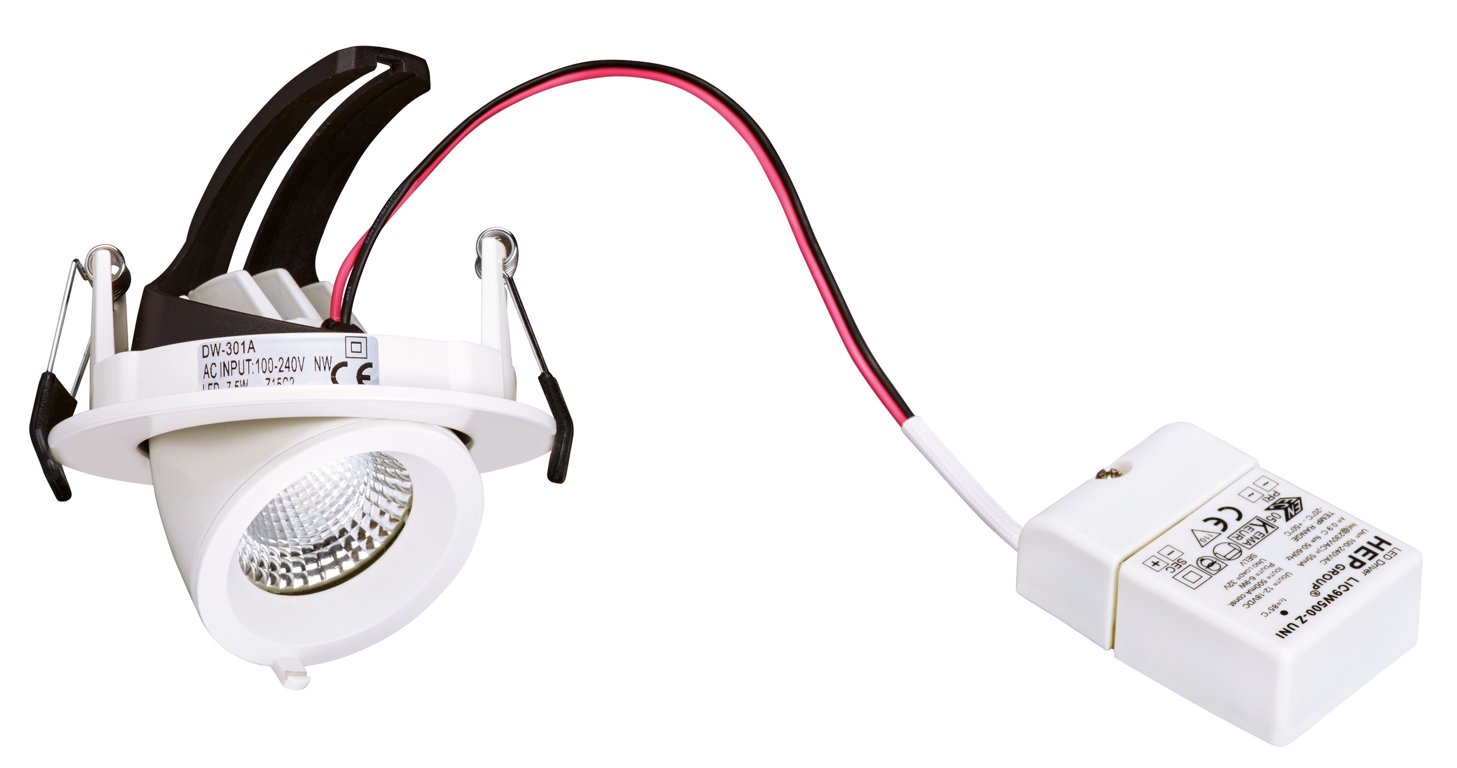 Downlight rond, orientable, en aluminium blanc, 36°, LED intégrée 10,7W 4000K 800 lumens 50000h avec boite de connexion repiquable sans outil