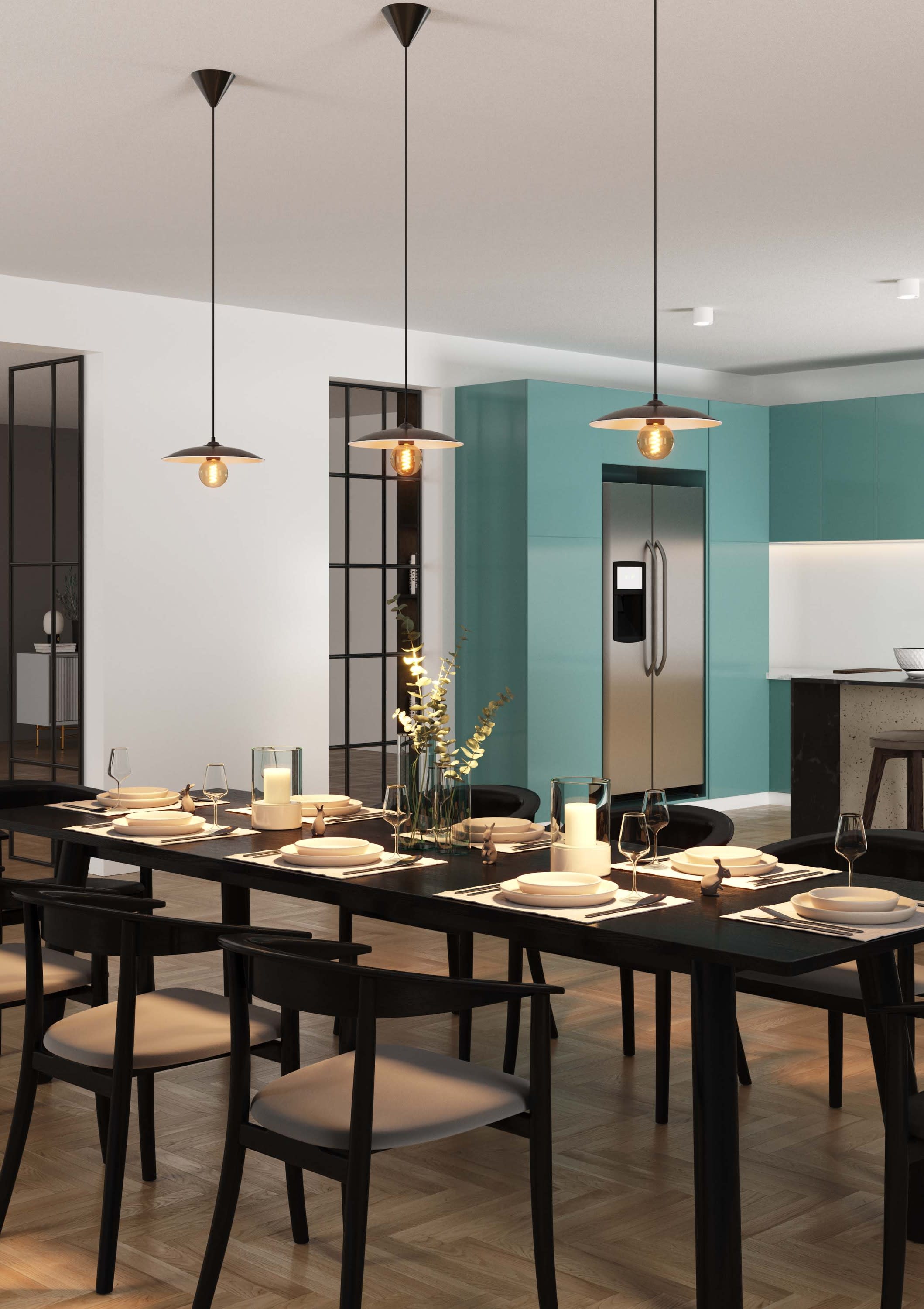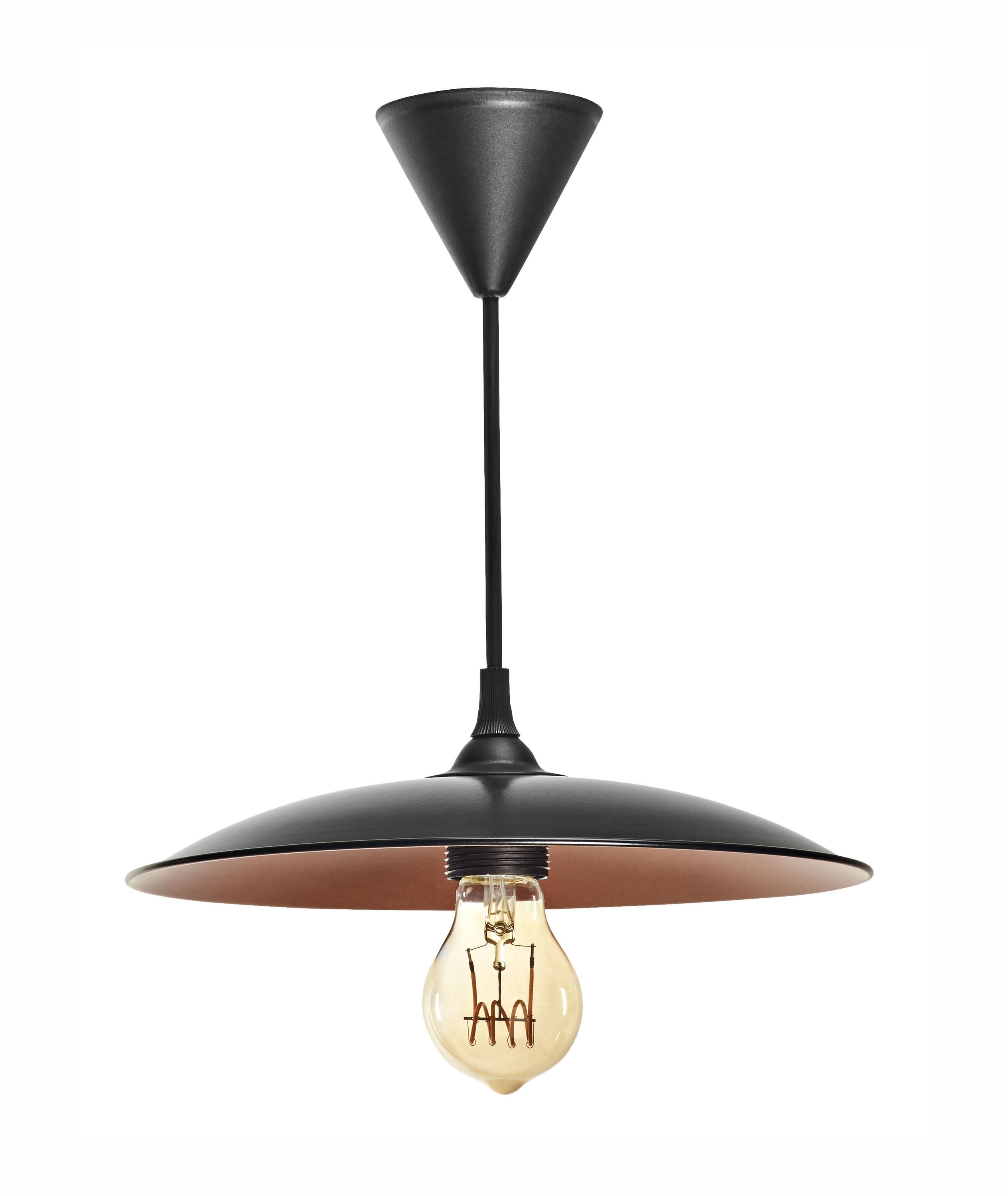Suspension E27 60W max, Ø280mm, acier noir, intérieur cuivré, lampe non fournie