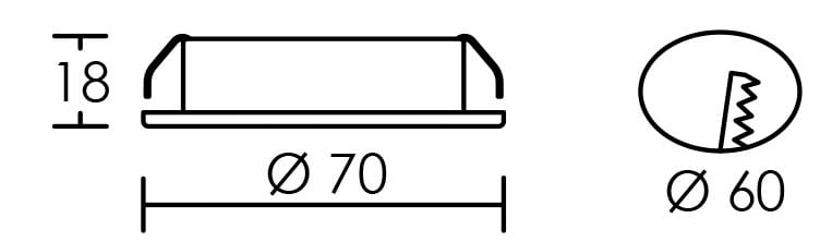 Encastré thermoplastique rond doré Ø70mm, fourni avec lampe G4 LED 1,8W 3000K 150lm, 25000h