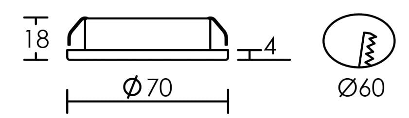 Encastré thermoplastique/face zamak, rond chromé Ø70mm, fourni avec lampe G4 LED 1,8W 3000K 150lm, 25000h