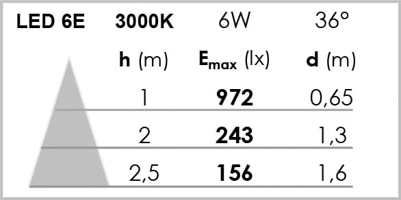 Encastré GU10, rond Ø95mm, blanc, basculant, IP20, Classe 2, fourni avec lampe LED 6W 36° 3000K 470 lumens 15000H.