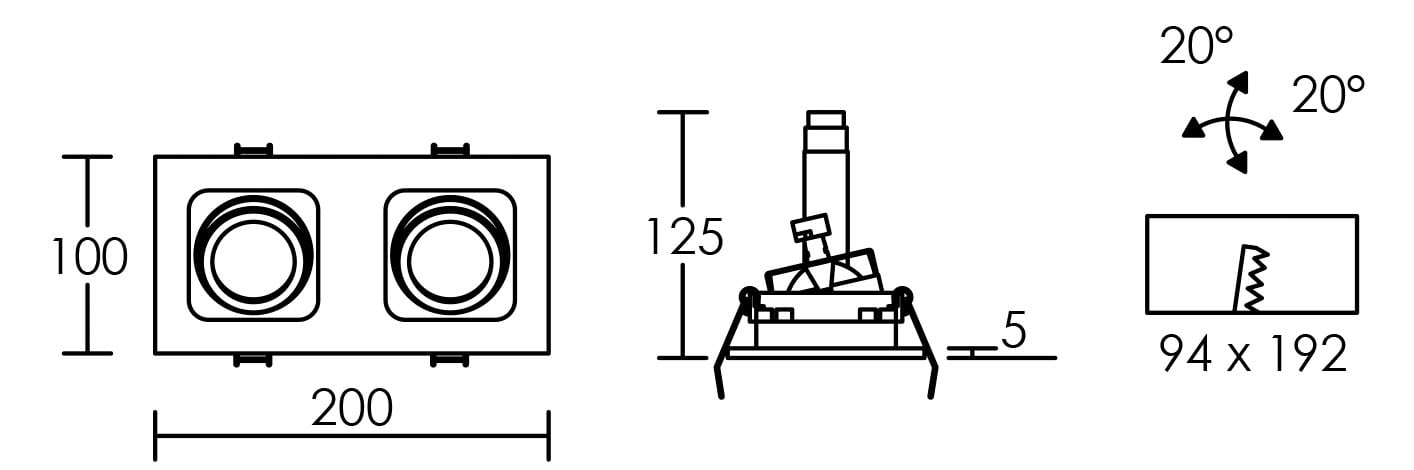 Aric - SQUARE 100-12 - Encastré GU5,3, rectang., orient. et basc., alu, Lpe non incl. - 4723