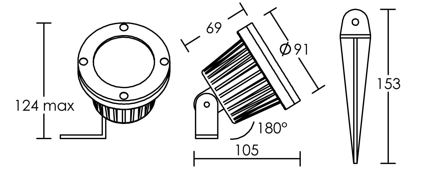 Aric - SUB 50 - Proj. Ext. IP68 IK07, blanc, lpe GU5,3 LED 5,3W 3000K 460lm - 0801