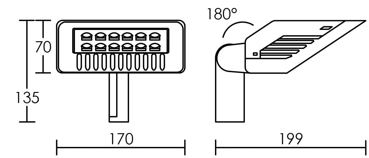 Orientable jusqu’à 180°, ses dimensions relativement compactes, lui permettent de s’intégrer discrètement dans tous les configurations