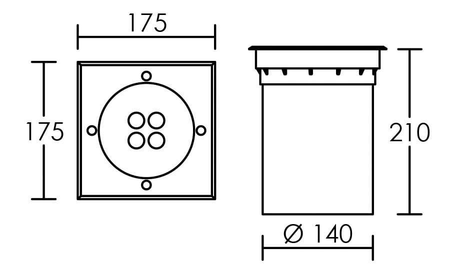 Encastré de sol Extérieur TECNISOL 150 IP67 IK10, carré, inox, LED 12W 10° 3000K 700 lumens, 50000H
