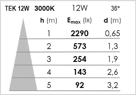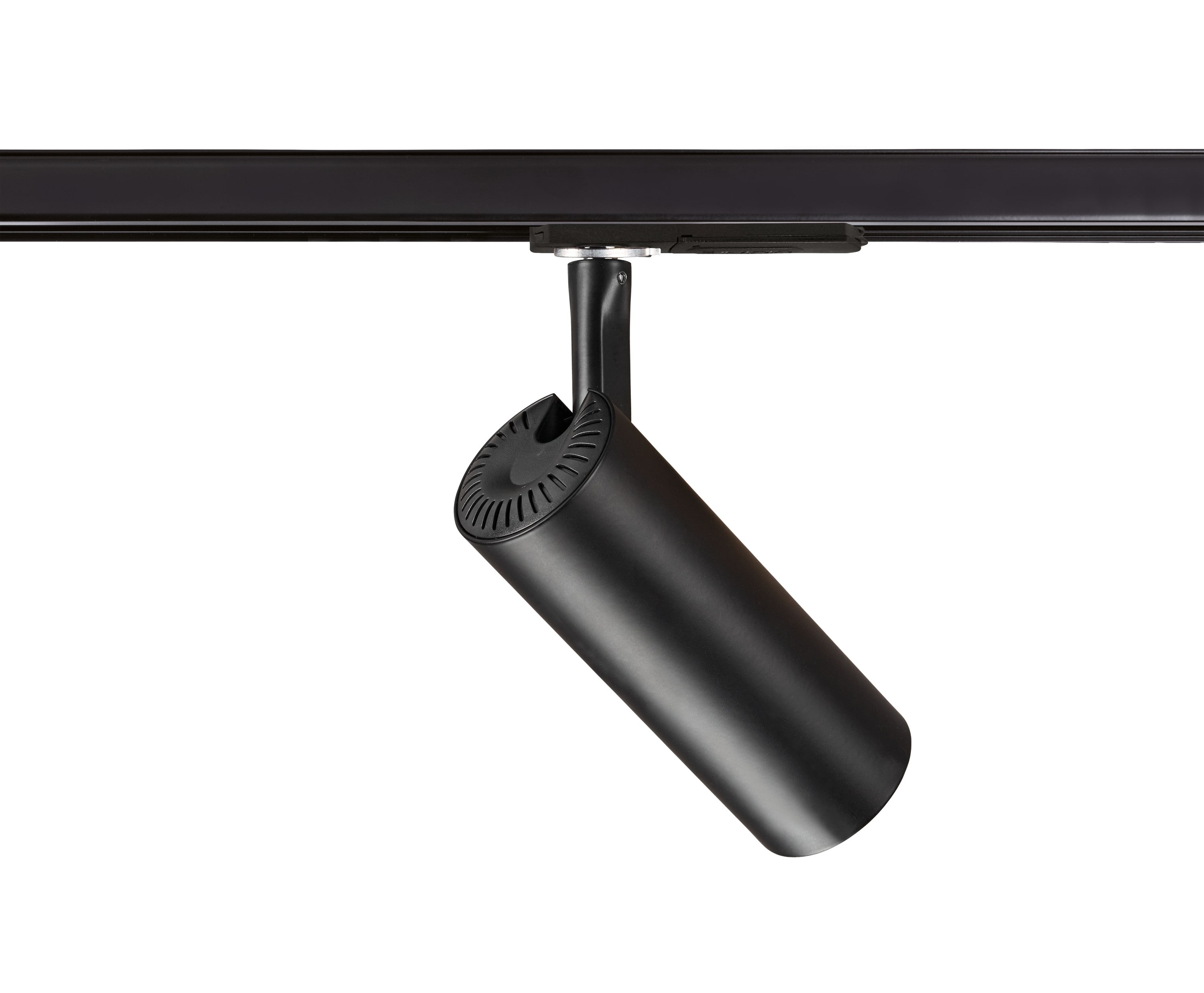Projecteur pour Rail 1 allumage 029, aluminium noir, faisceau 36°, LED intégrée 12,5W 3000K, flux sortant 1050 lumens, 30000H