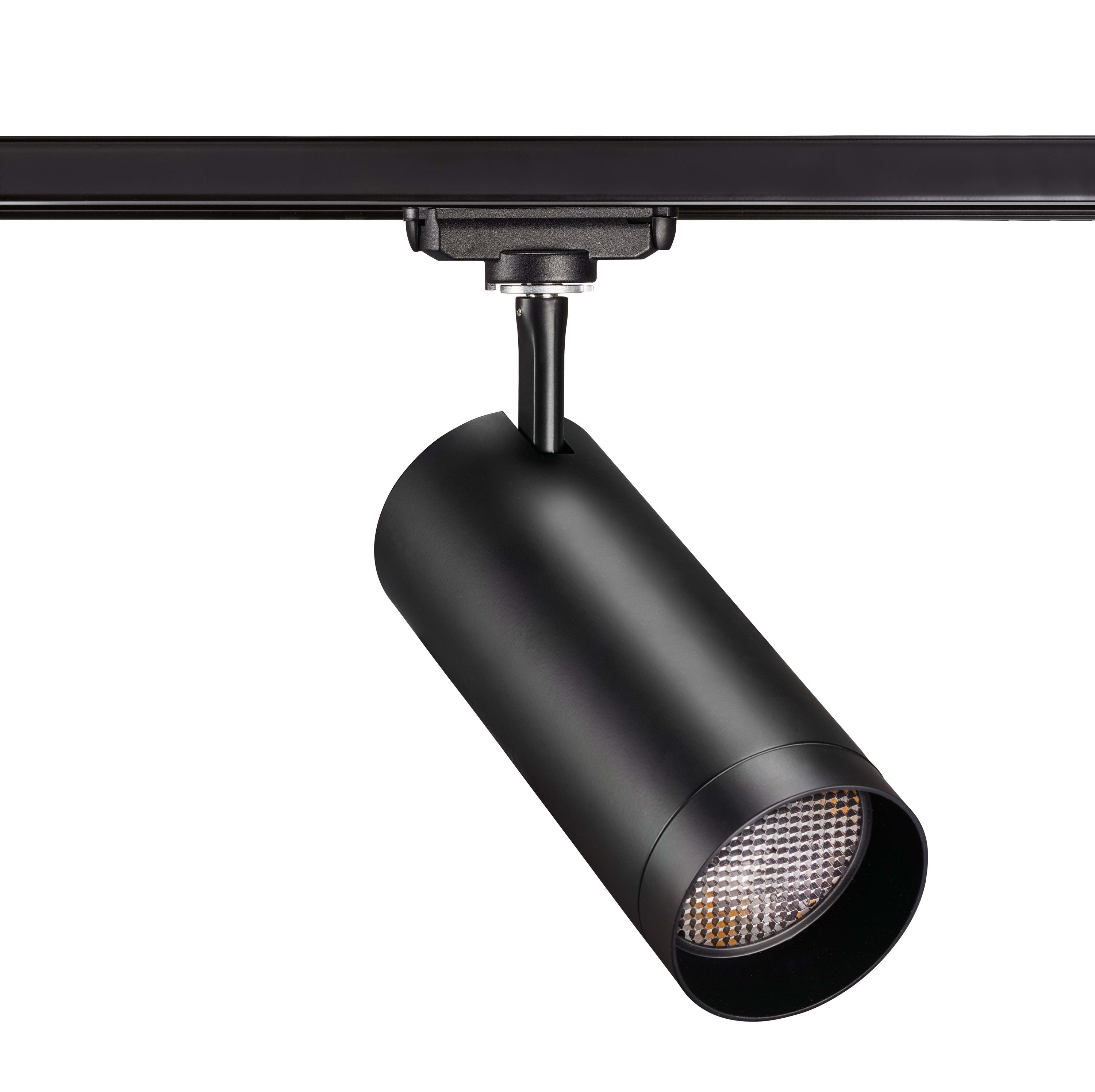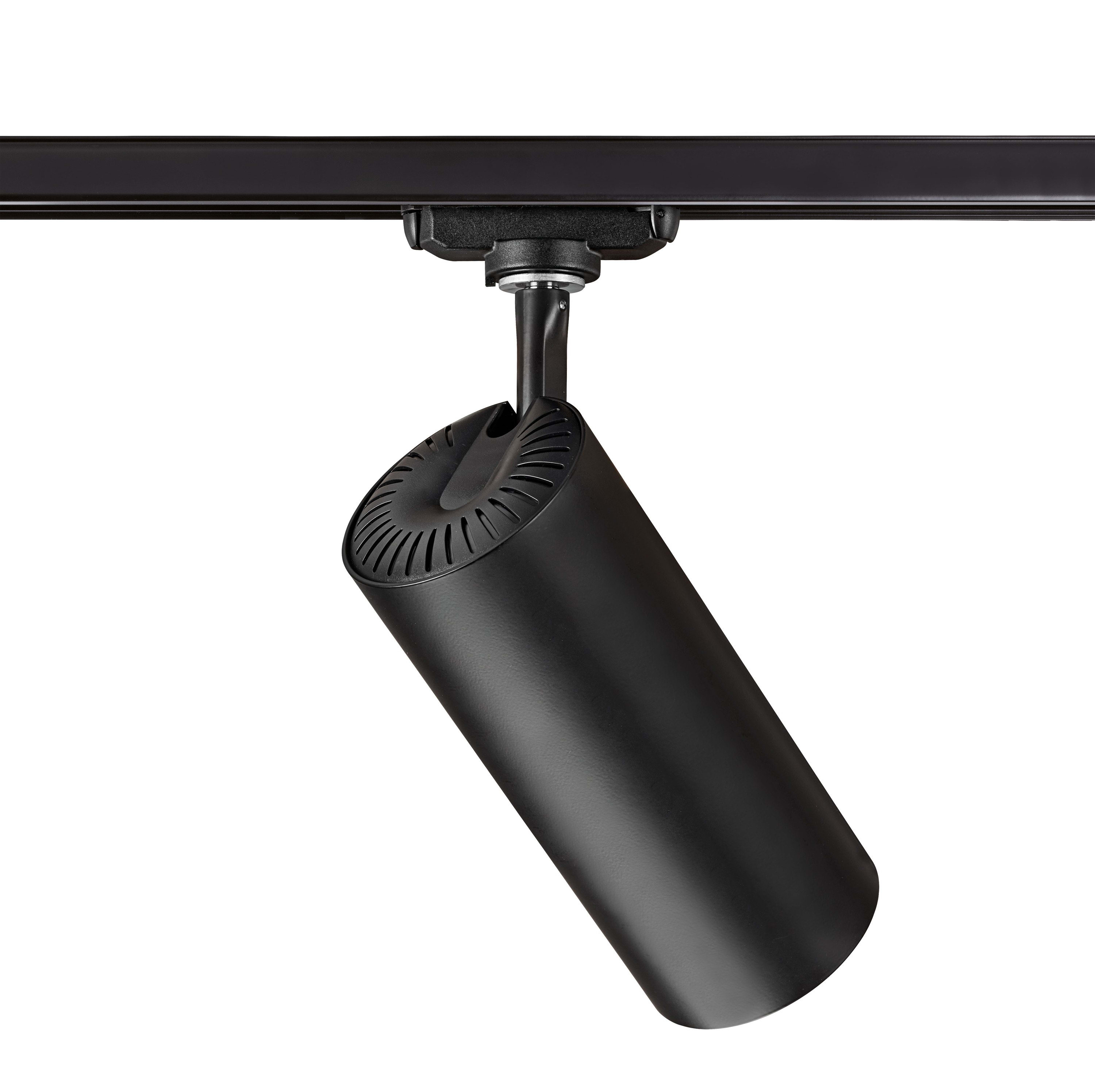 Projecteur pour Rail 1 allumage 029, aluminium noir, faisceau 36°, LED intégrée 31,7W 3000K, flux sortant 3000 lumens, 30000H