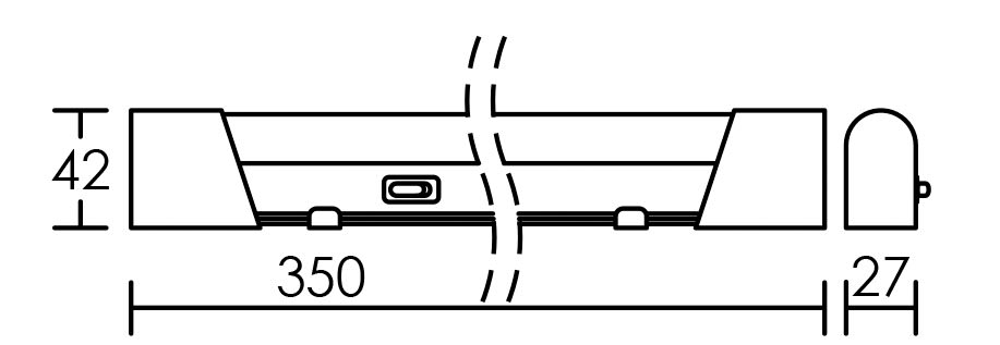 Réglette IP20, aluminium, longueur : 350mm, LED intégrée 5,5W 4000K 400 lumens, avec interrupteur