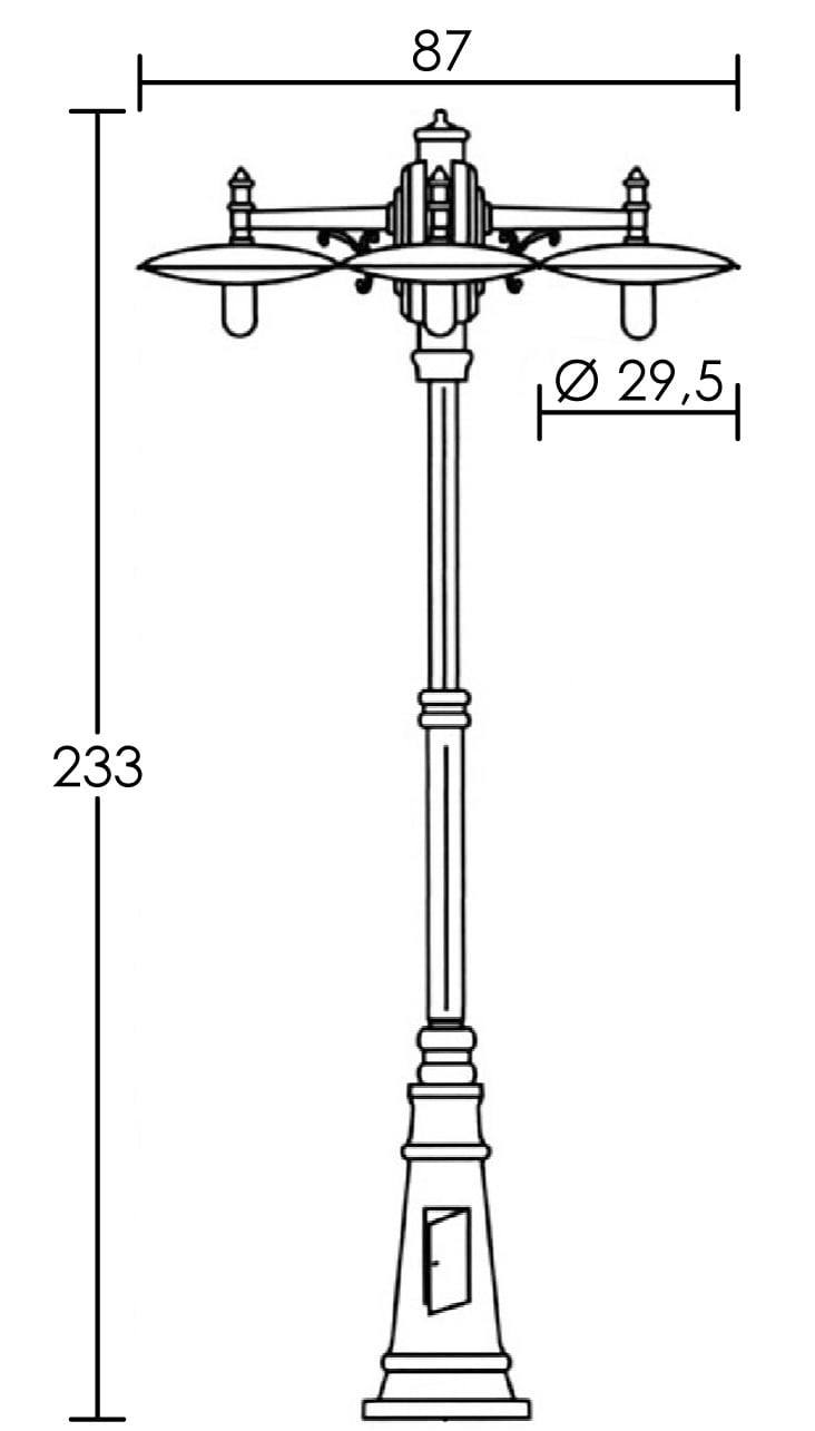 Lanterne sur Mât IP43 IK02, cuivré, E27 2x57W max, lampe non fournie, hauteur 2, 33m