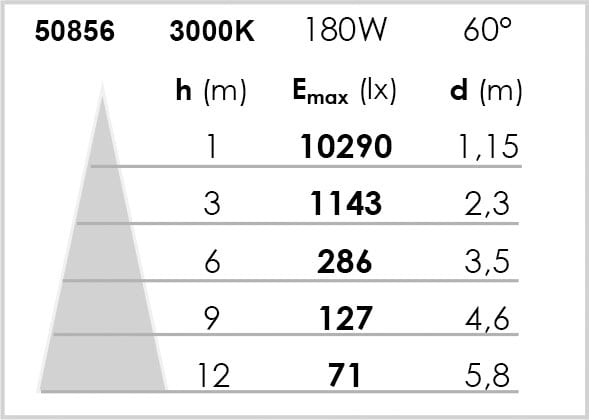 Son aspect simple et efficace s'ajoute à des performances exceptionnelles : avec un flux lumineux de 19800 lumens en 3000k (blanc chaud) et une consommation de seulement 178W, ce projecteur LED IP65 affiche un rendement à 110lm/W.