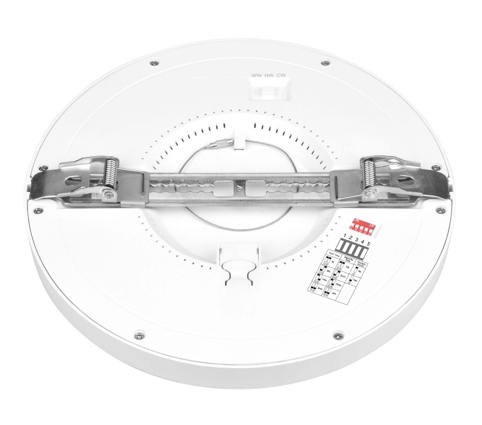 Spot encastré / Plafonnier à détection infra rouge UNIVERSAL SENSOR 18W Ø224mm entraxe réglable, en encastré ou saillie, extra-plat, alim. intégrée. LED 110° 18W 30000h 1450lm, température de couleur réglable (CCT 3000/4000/6000K). Variable (coupure de phase). Avec détecteur PIR.