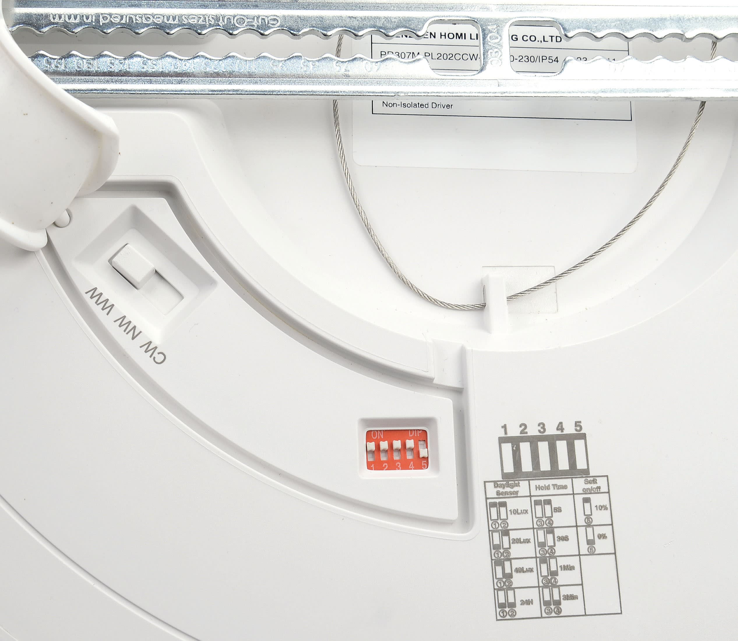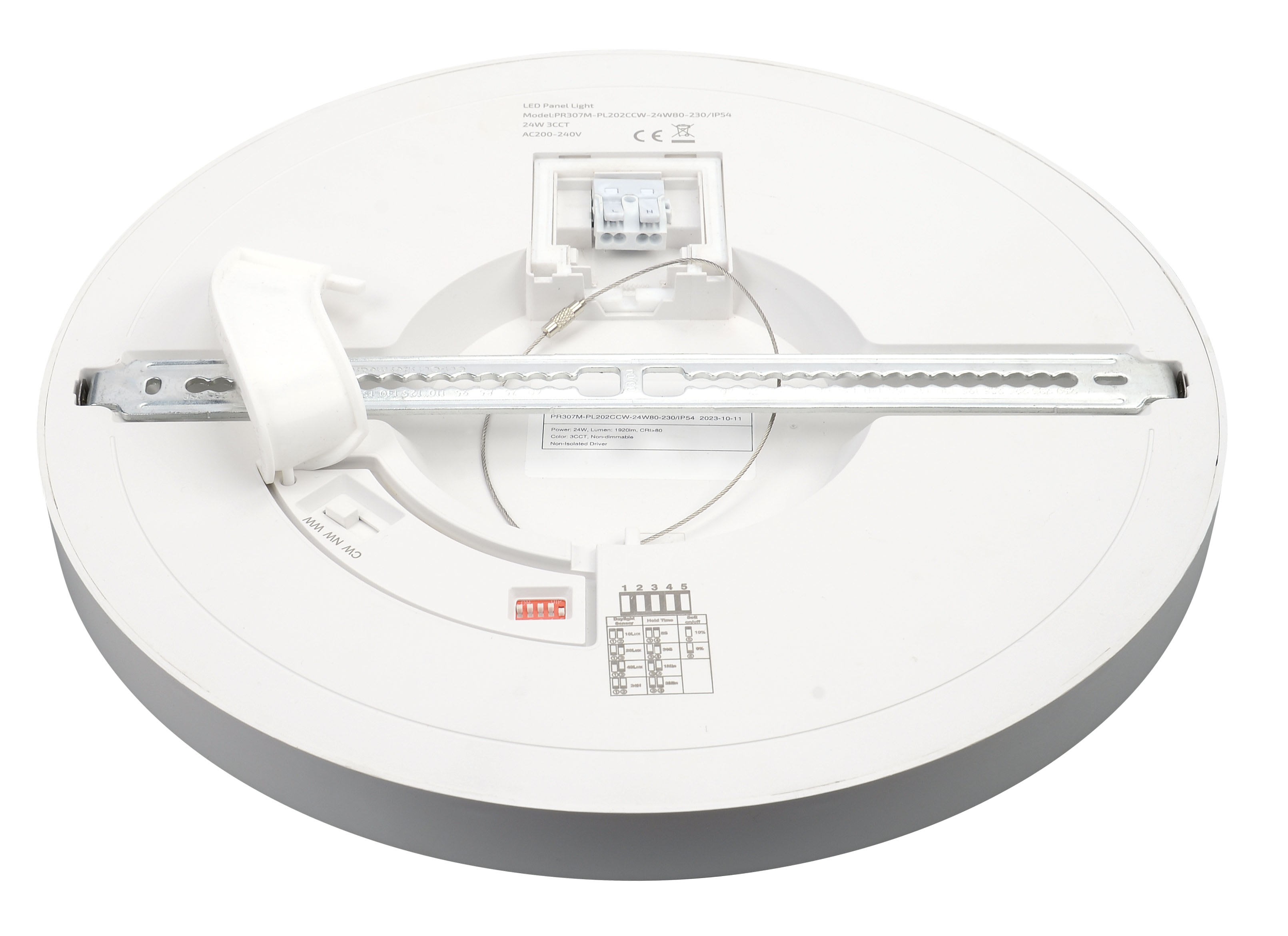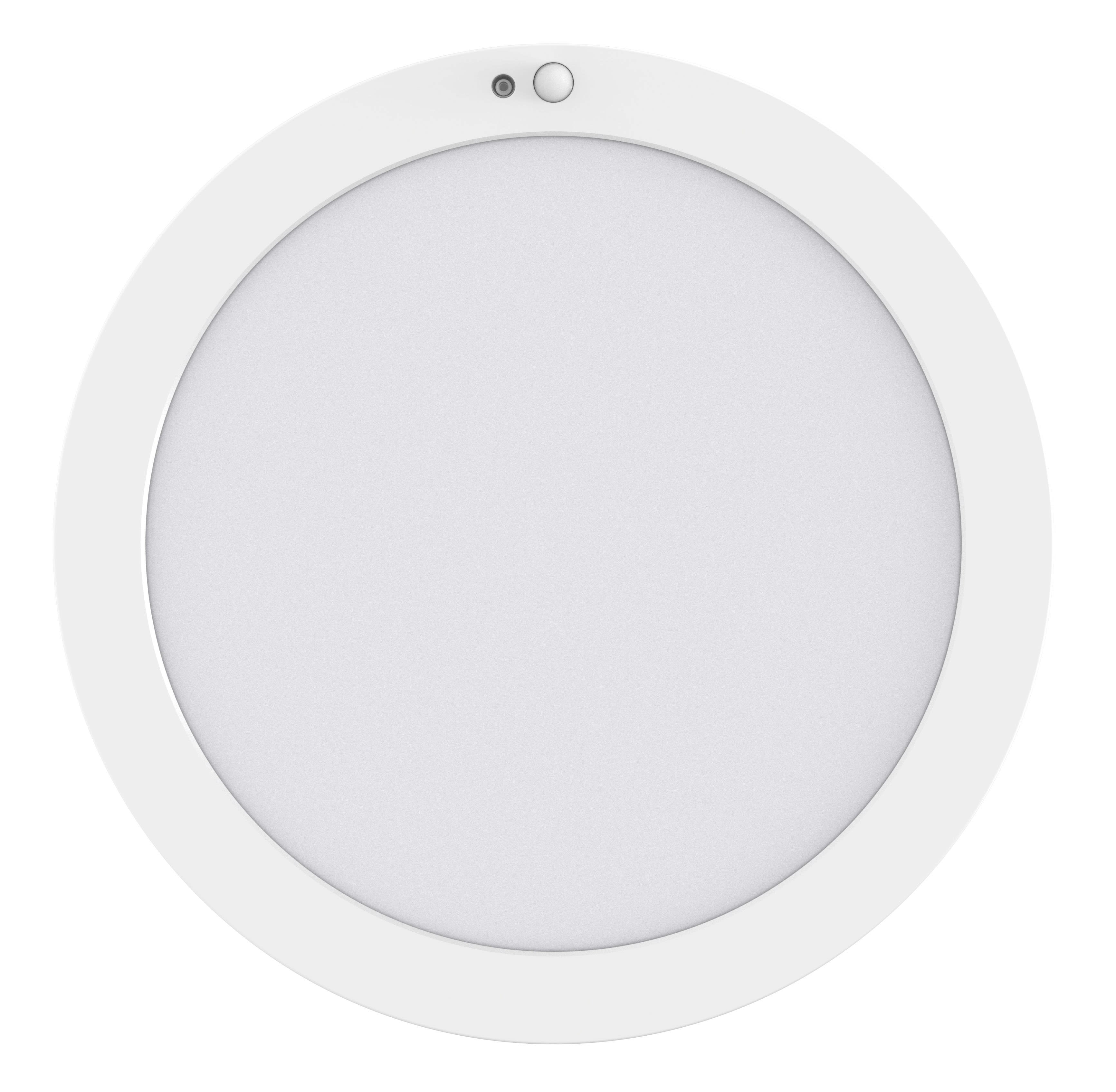 Spot encastré / Plafonnier à détection infra rouge UNIVERSAL SENSOR 24W, Technologie CCT 3 couleurs : 3000 K / 4000 K / 6500 K, Épaisseur 15 mm, Plusieurs possibilités d’installation : Applique / Plafonnier + encastrement réglable, Driver dimmable intégré. Détecteur infra rouge réglable à l'arrière avec fonction de détection crépusculaire, mouvement et veille à 10%