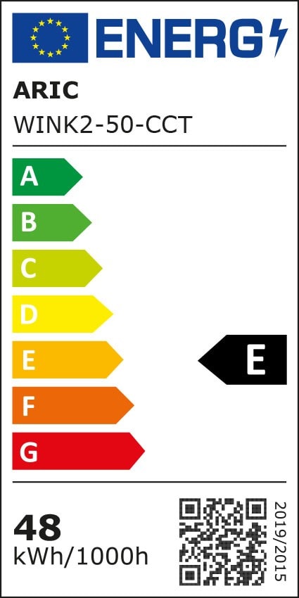 Projecteur WINK 2 intérieur/extérieur IP65 IK08, LED 110° 47,3W CCT 3-4000K, flux total 5500 lm / flux 120° 4800 lm. Corps alu noir, verre de protection trempé (non feuilleté). Connecteur IP68 préinstallé. Classe énergie (ErP 2021) = F