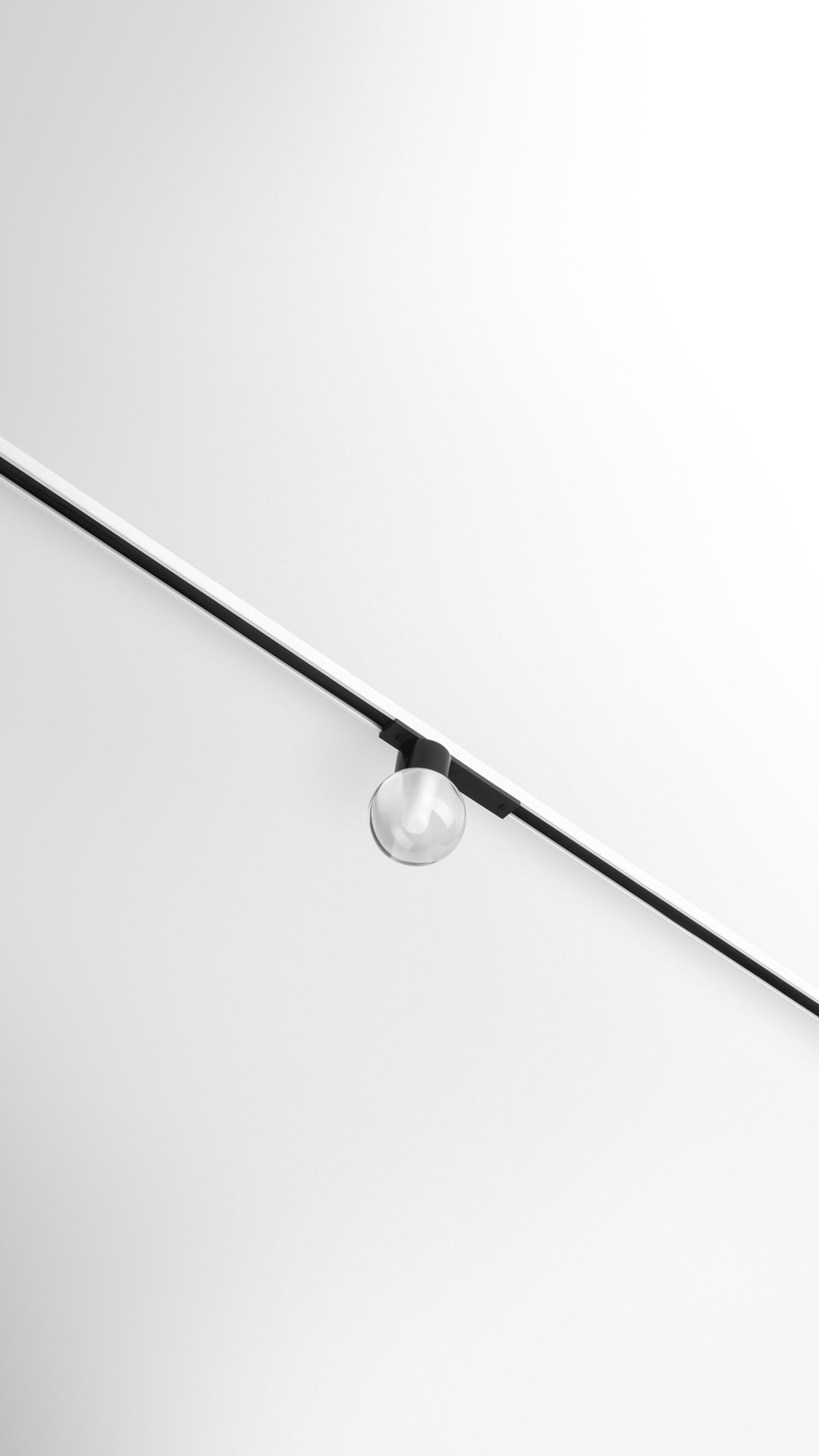 Profilé ultrafin en aluminium anodisé noir mat. Rail en saillie avec effet visuel trimless. Uniformité visuelle, ligne minimaliste noire. Miniaturisation optimale du rail, des luminaires et des composants.